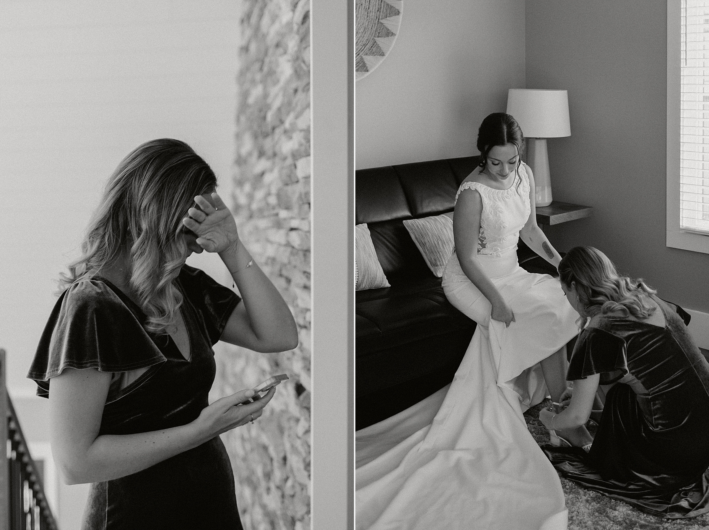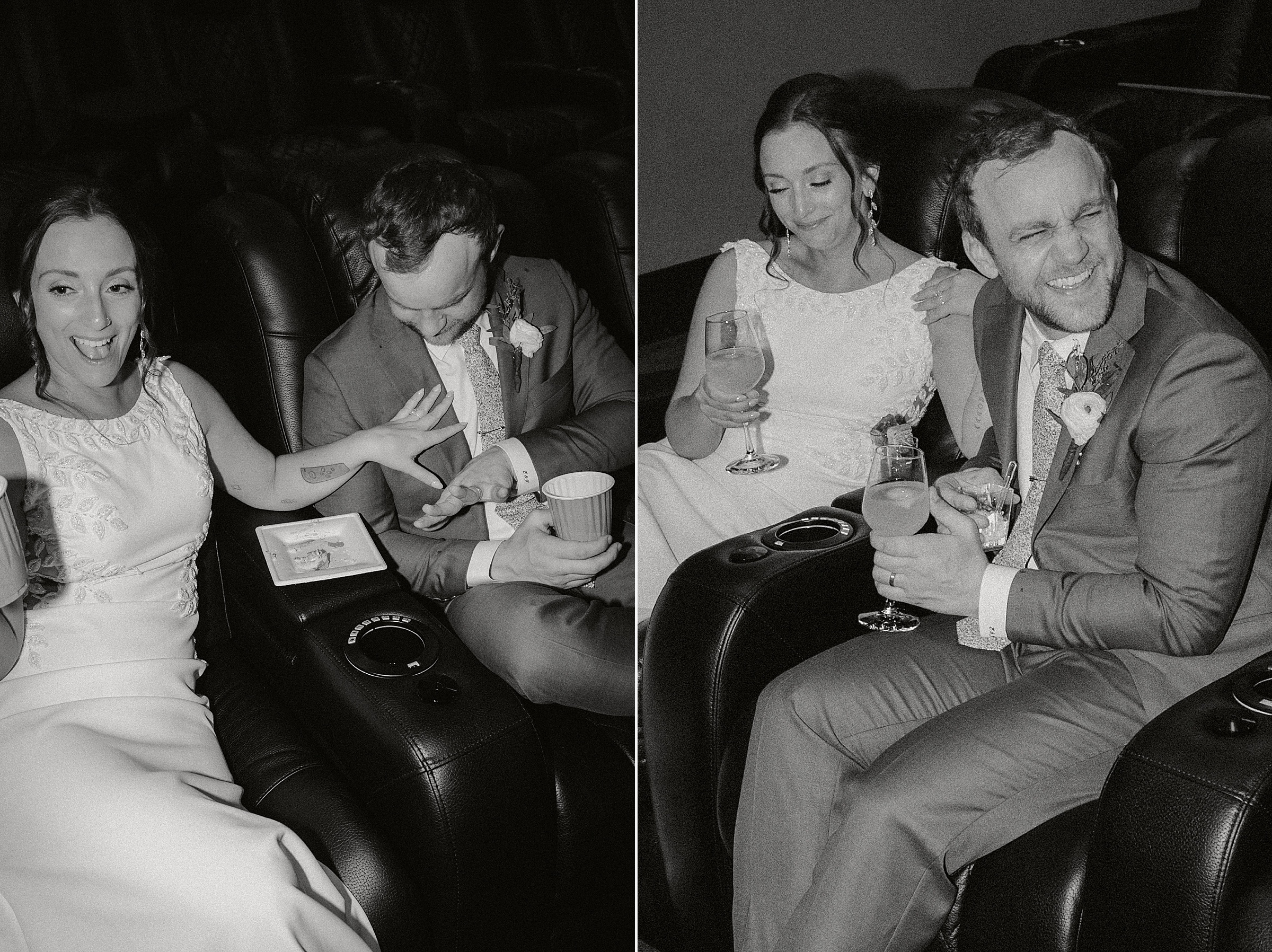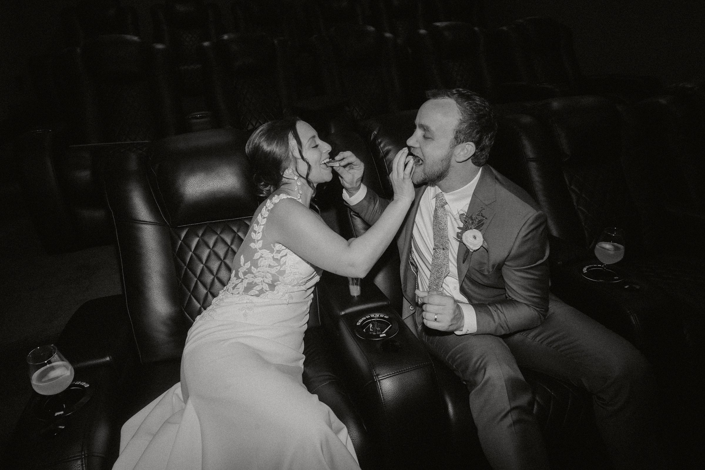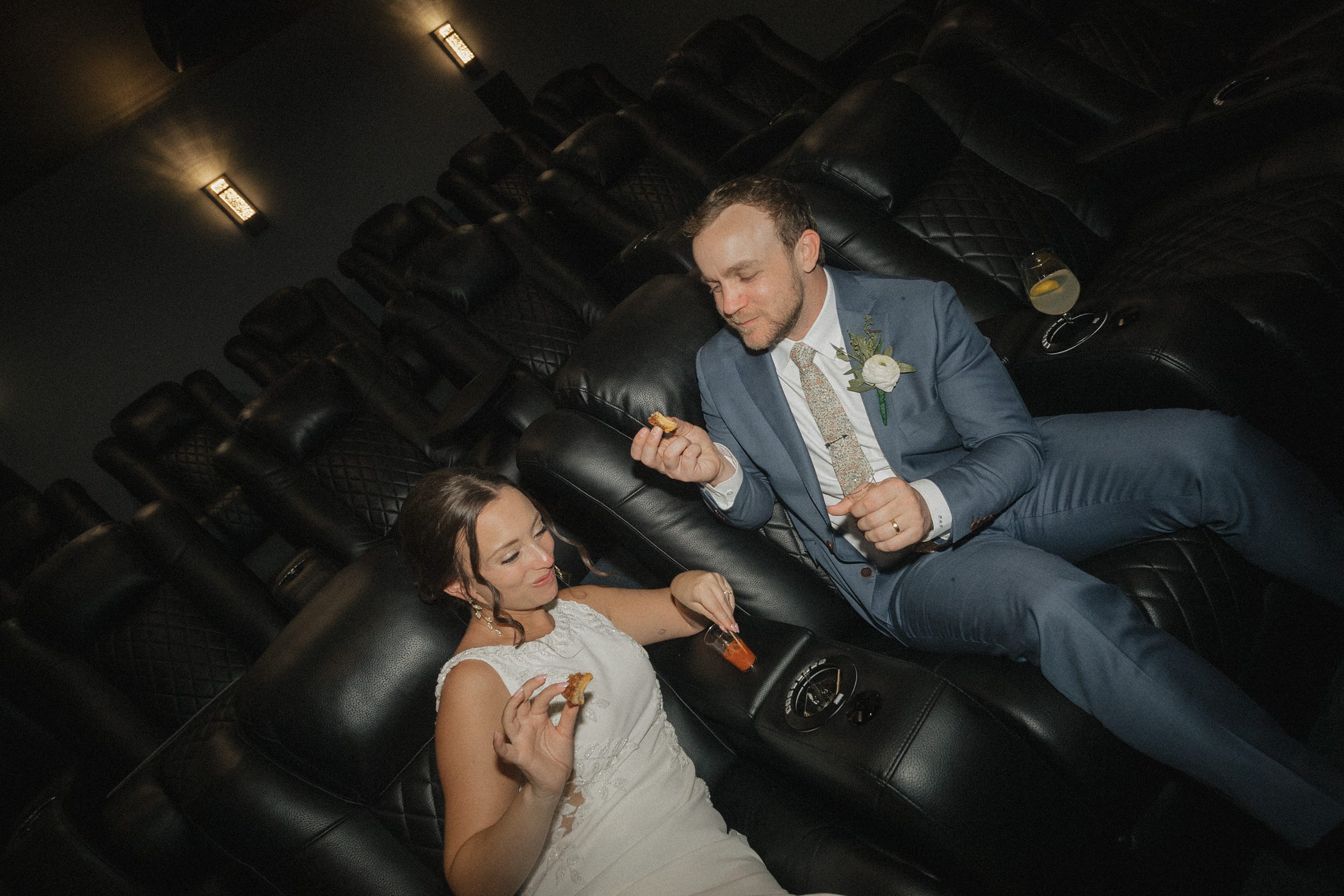A quick rain shower forced us all inside for about 30 minutes. The perfect time to get some fun photos of Jess & Ethan in one of the theater rooms in the home!