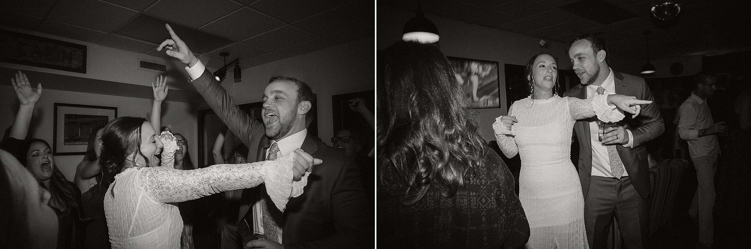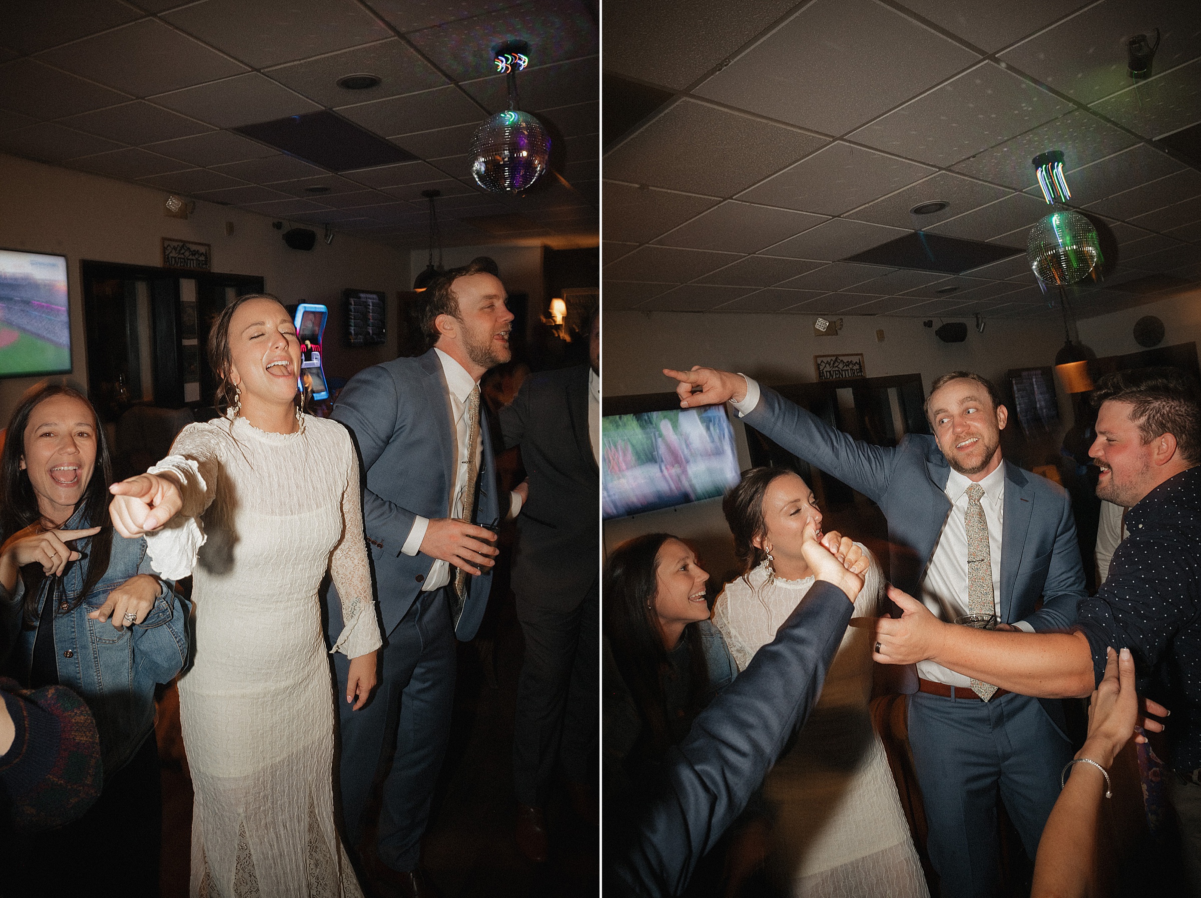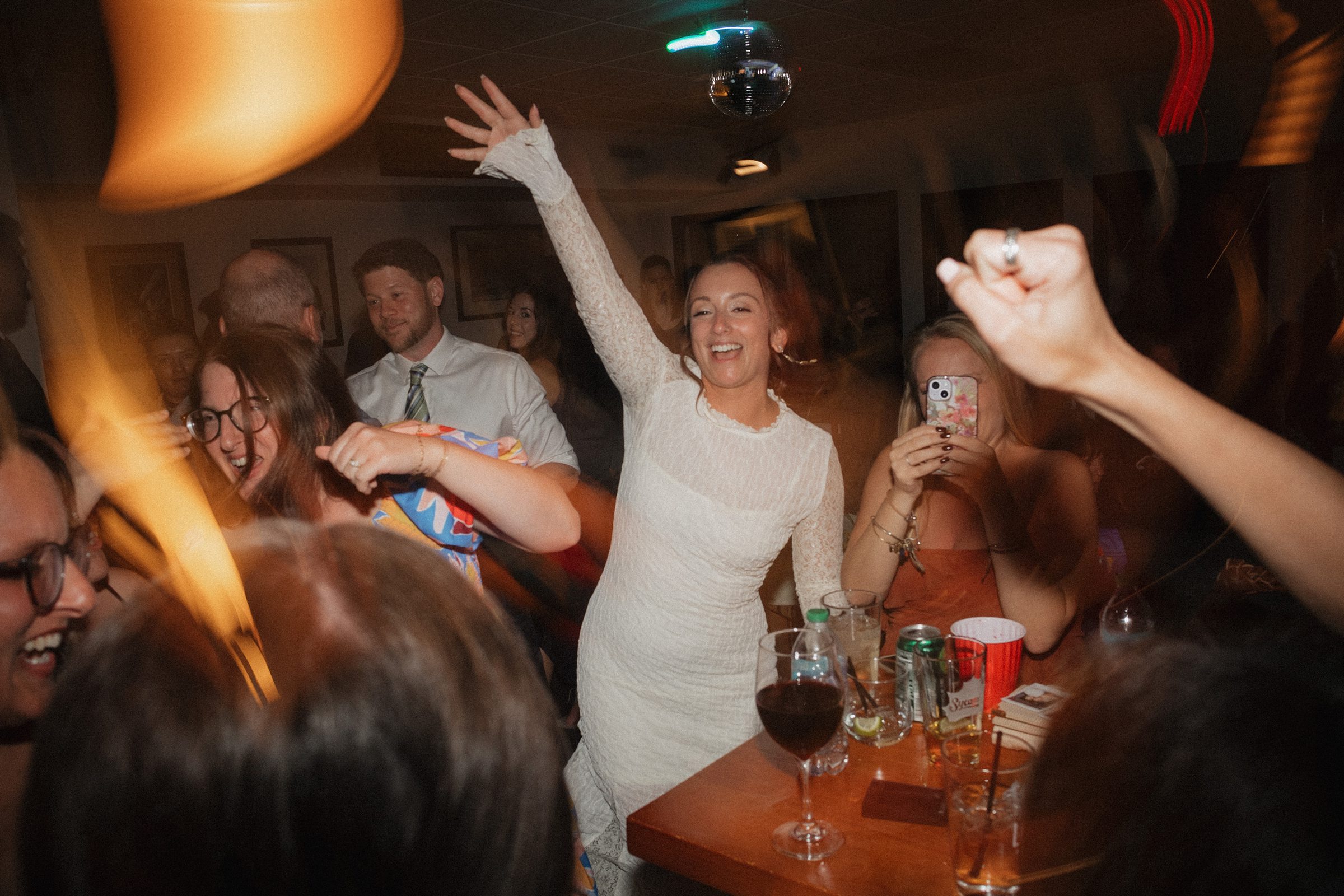 After dinner, everyone boarded a shuttle and rode a few miles up the road to their charming little reception space. The open bar, disco ball, and live music set the scene for a night of fun It was intimate, fun, and completely personal, everything Jess and Ethan could have wanted.