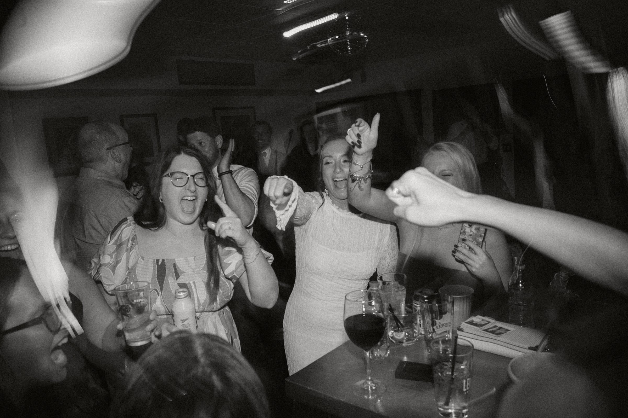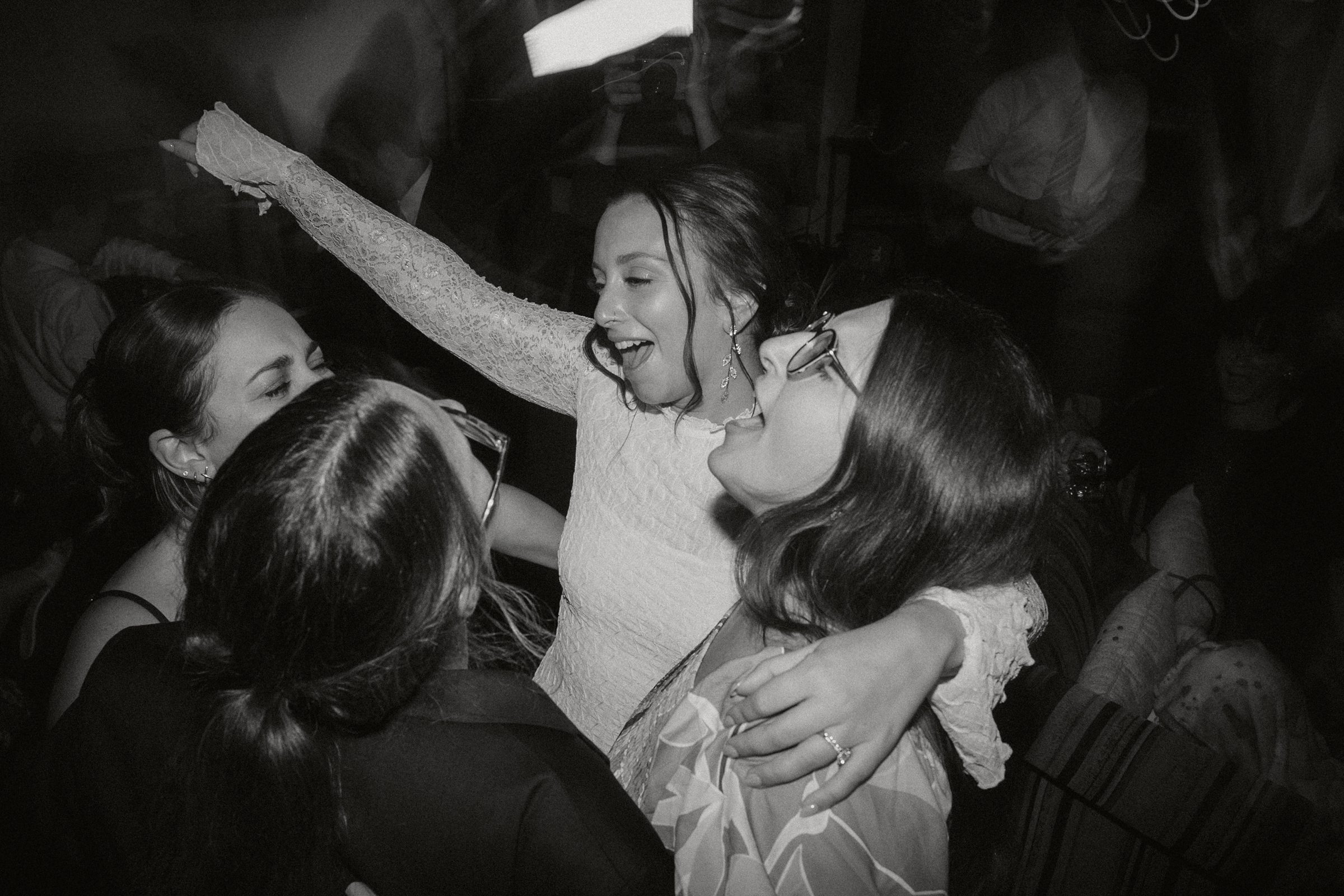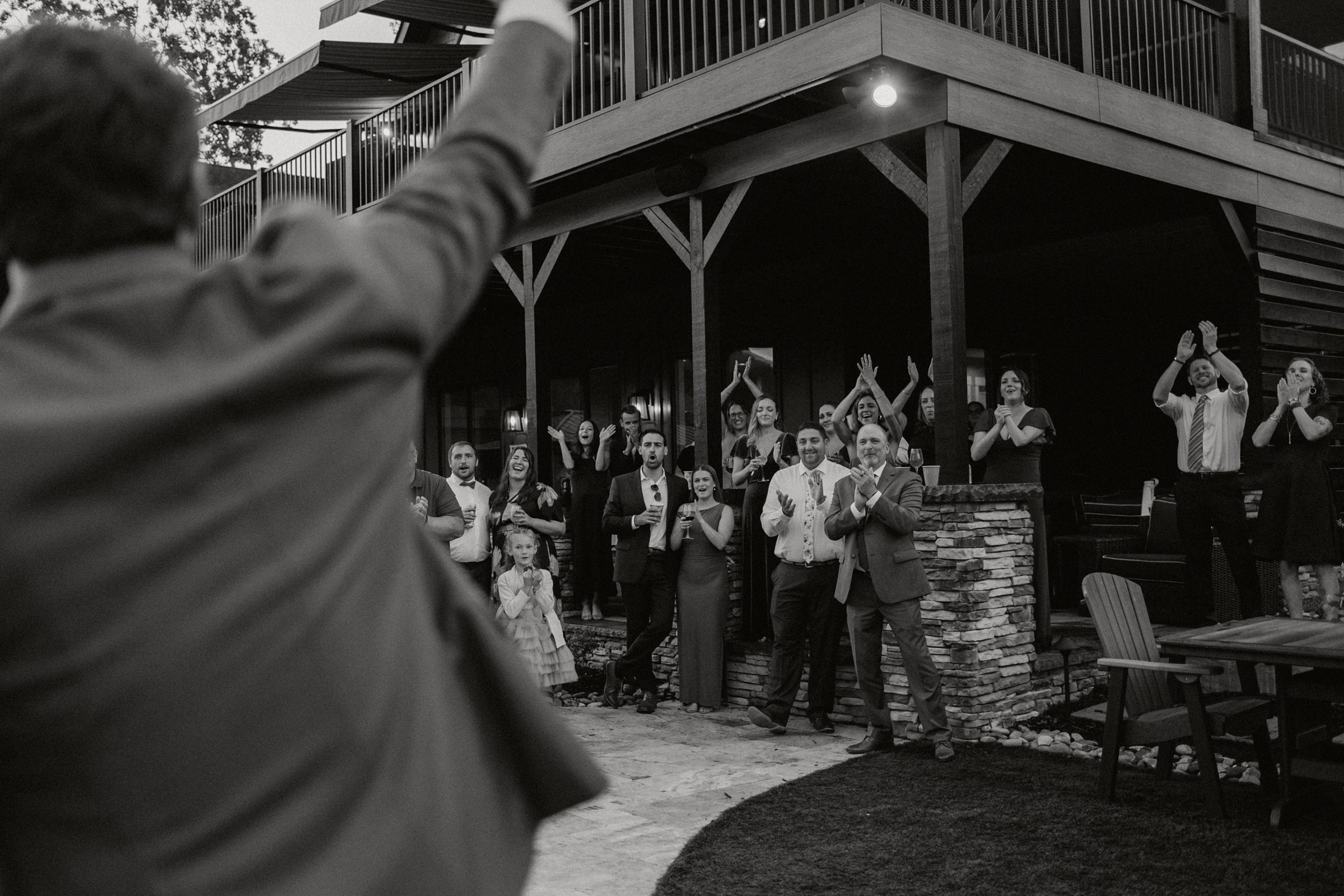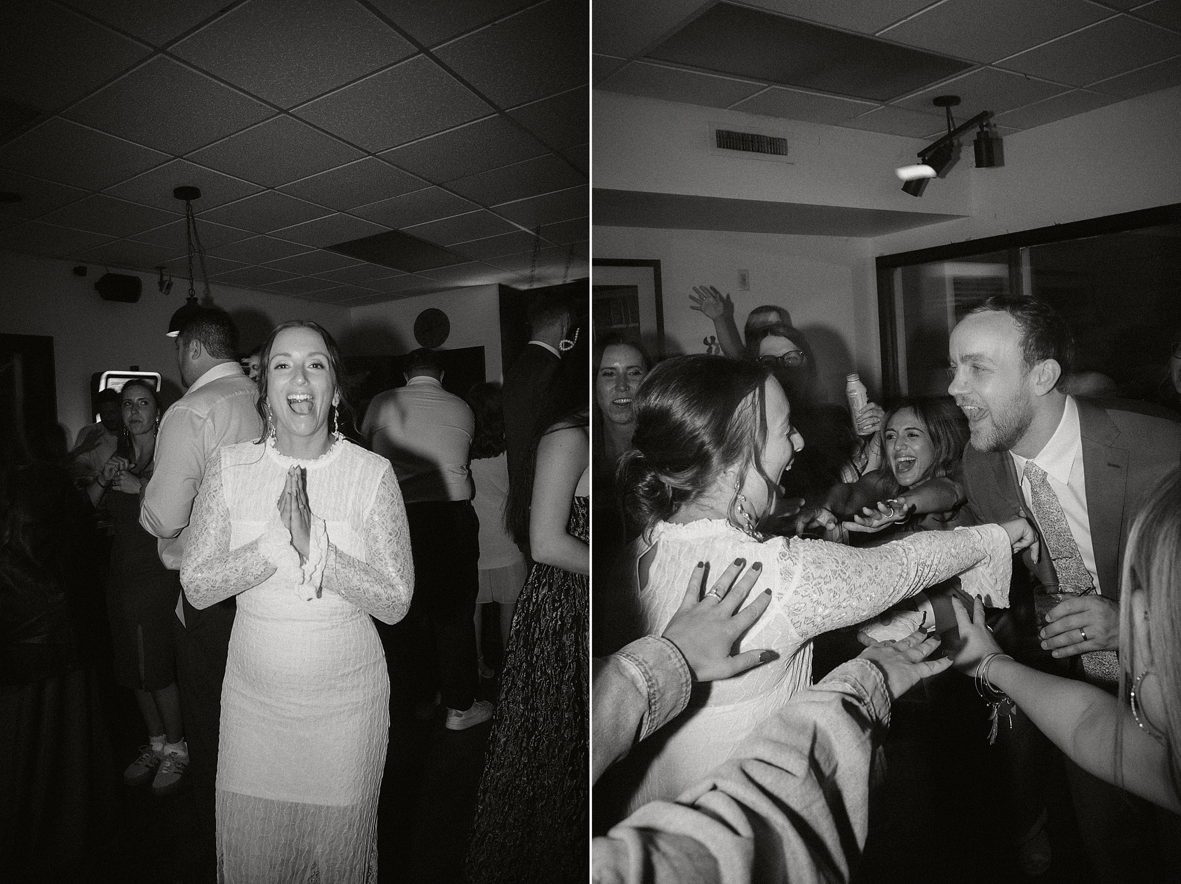 After dinner, everyone boarded a shuttle and rode a few miles up the road to their charming little reception space. The open bar, disco ball, and live music set the scene for a night of fun It was intimate, fun, and completely personal, everything Jess and Ethan could have wanted.