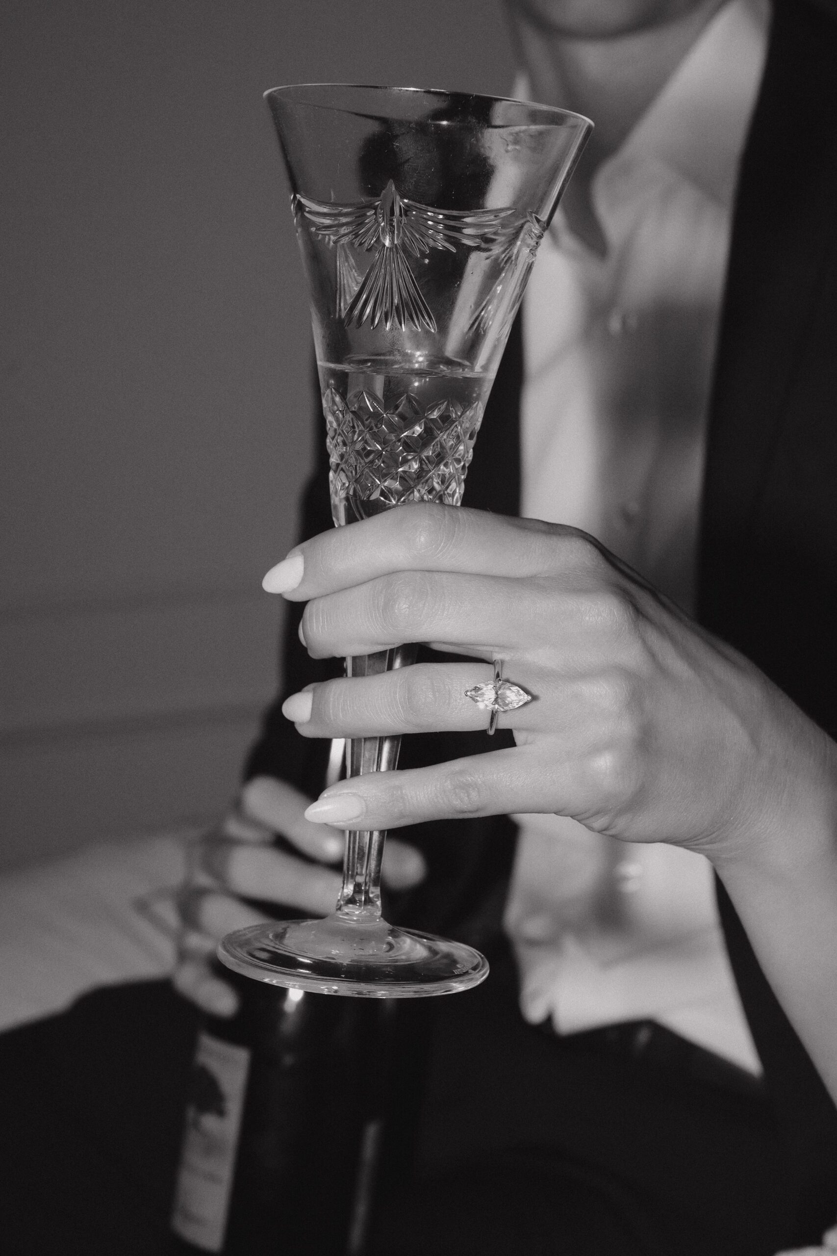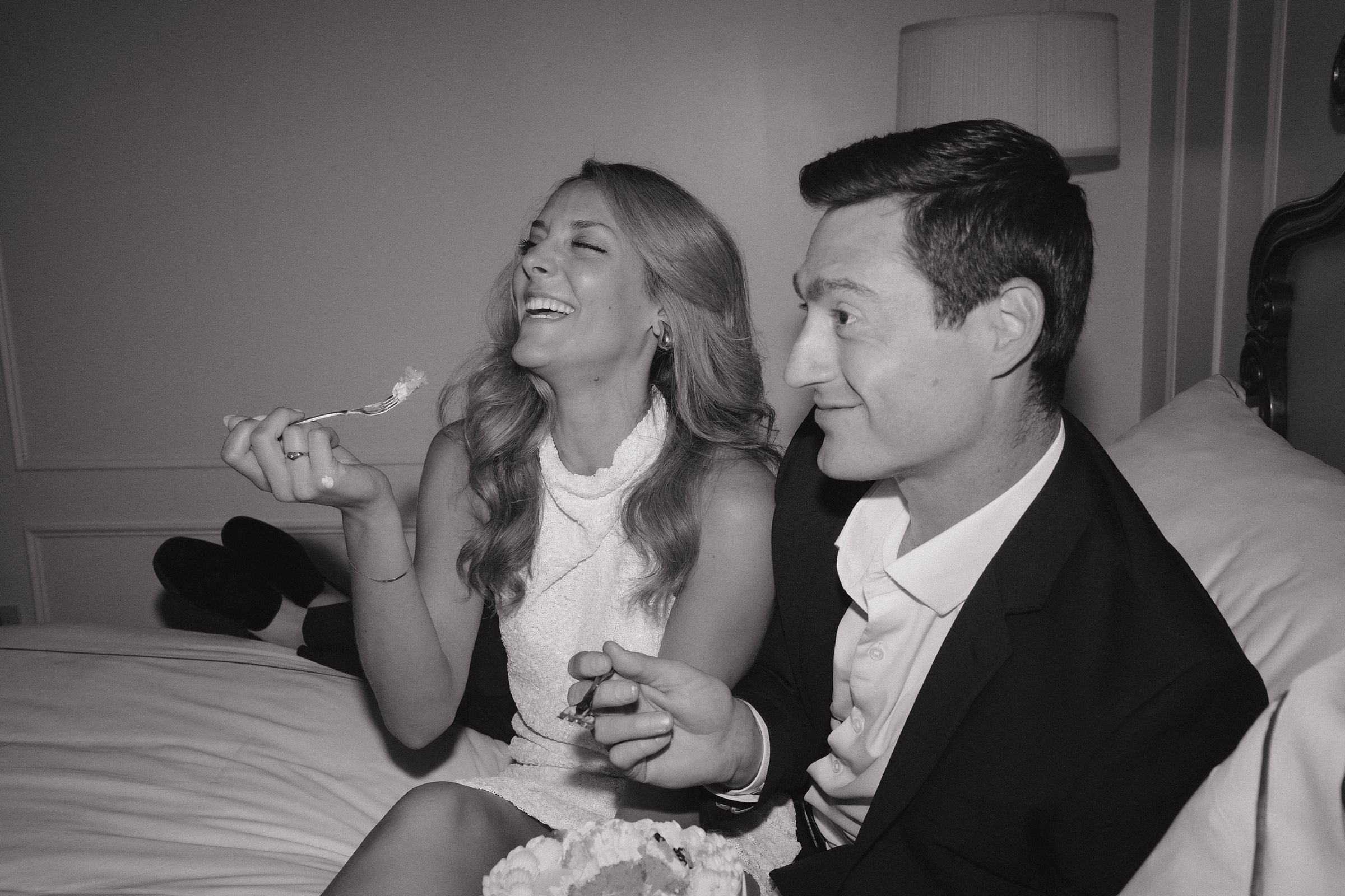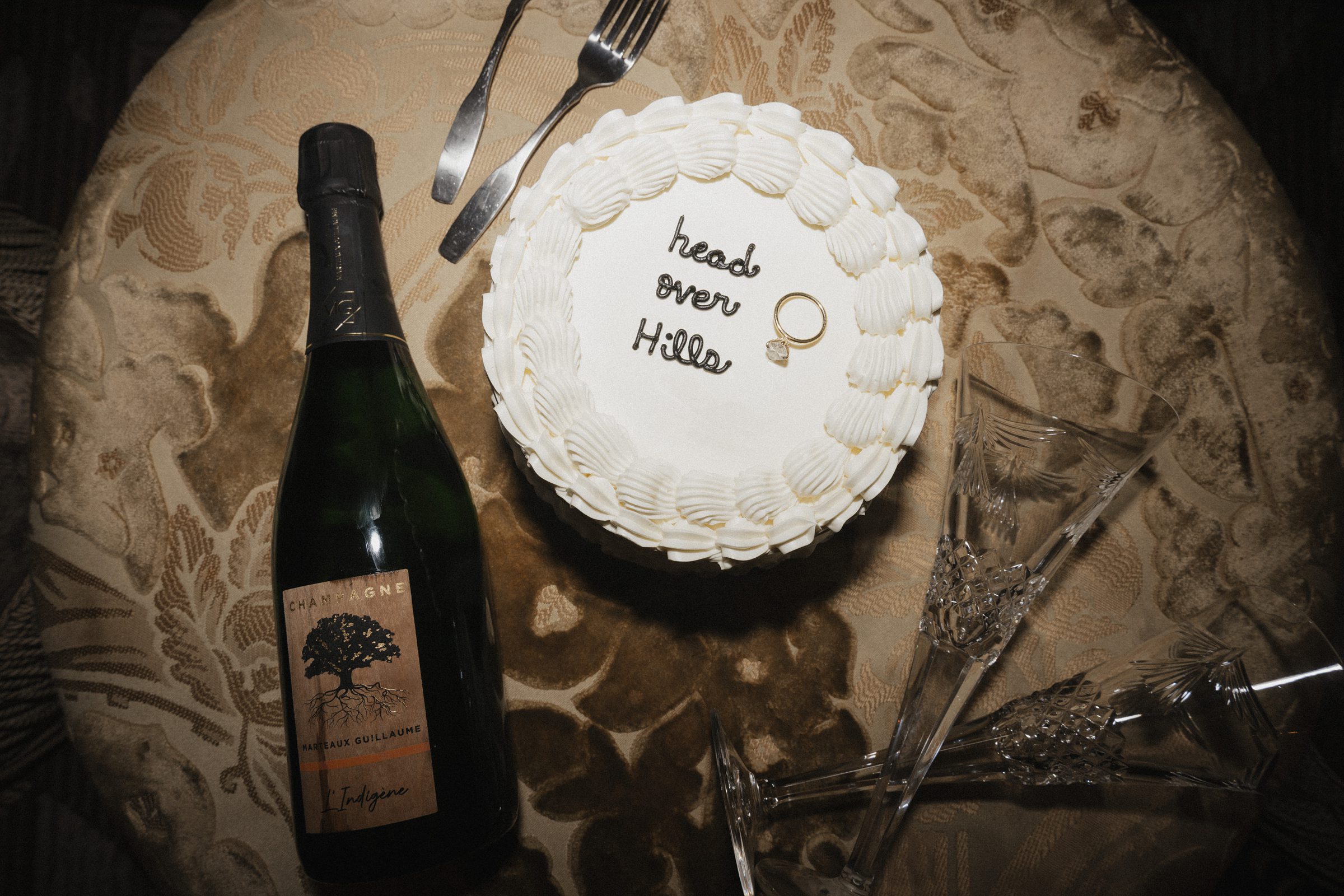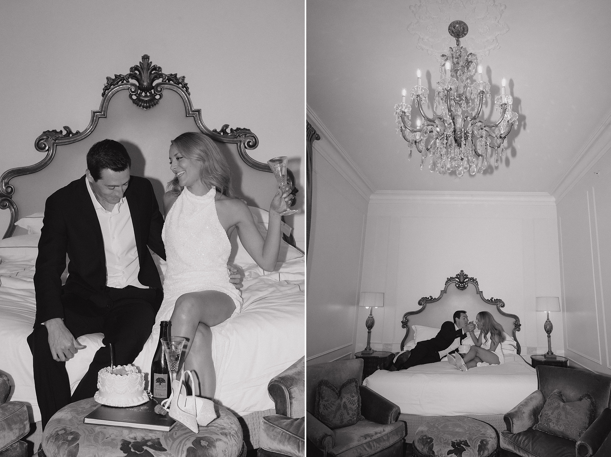 They started off in style, toasting with champagne in crystal glasses and sharing bites of a beautifully simple cake they brought along. The vibe was equal parts elegant and laid-back — a perfect match for the surroundings.