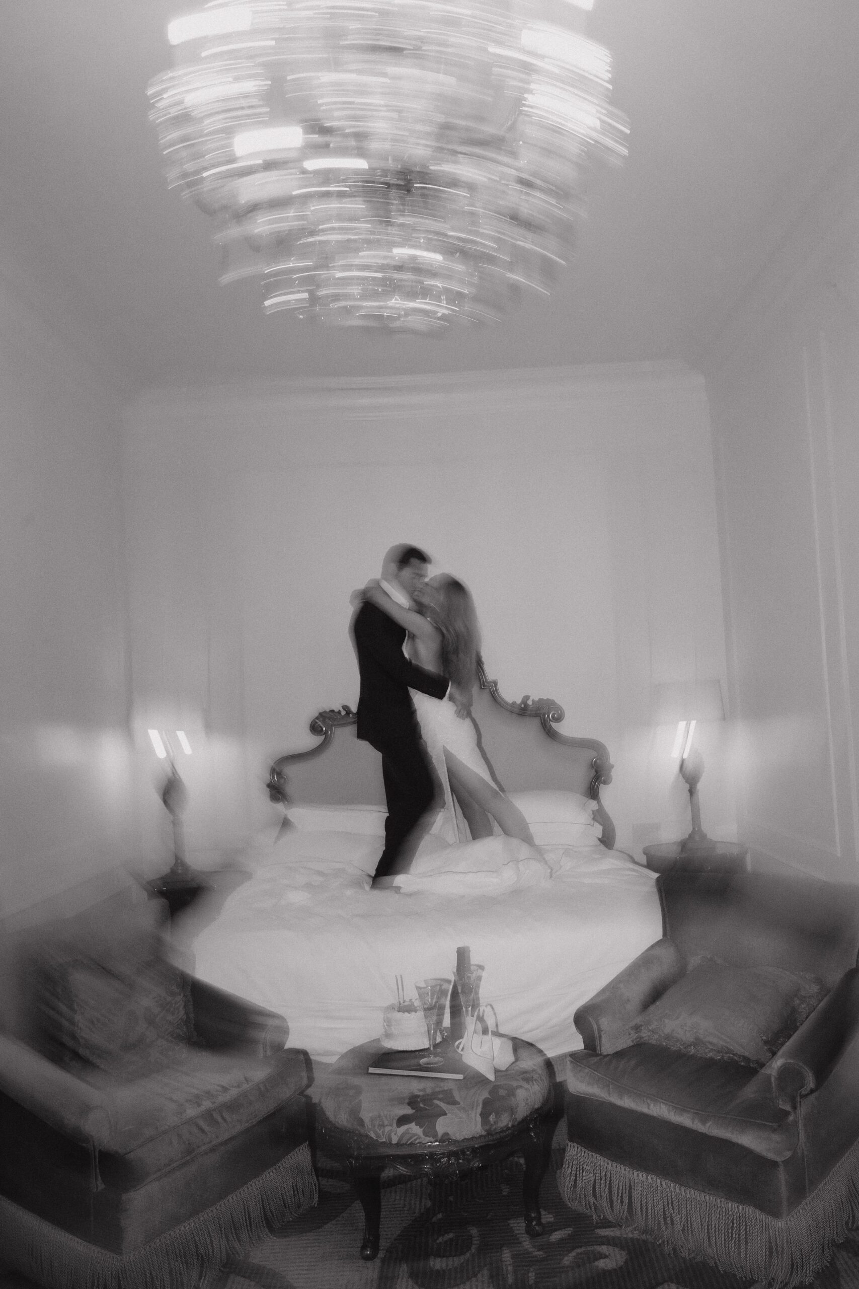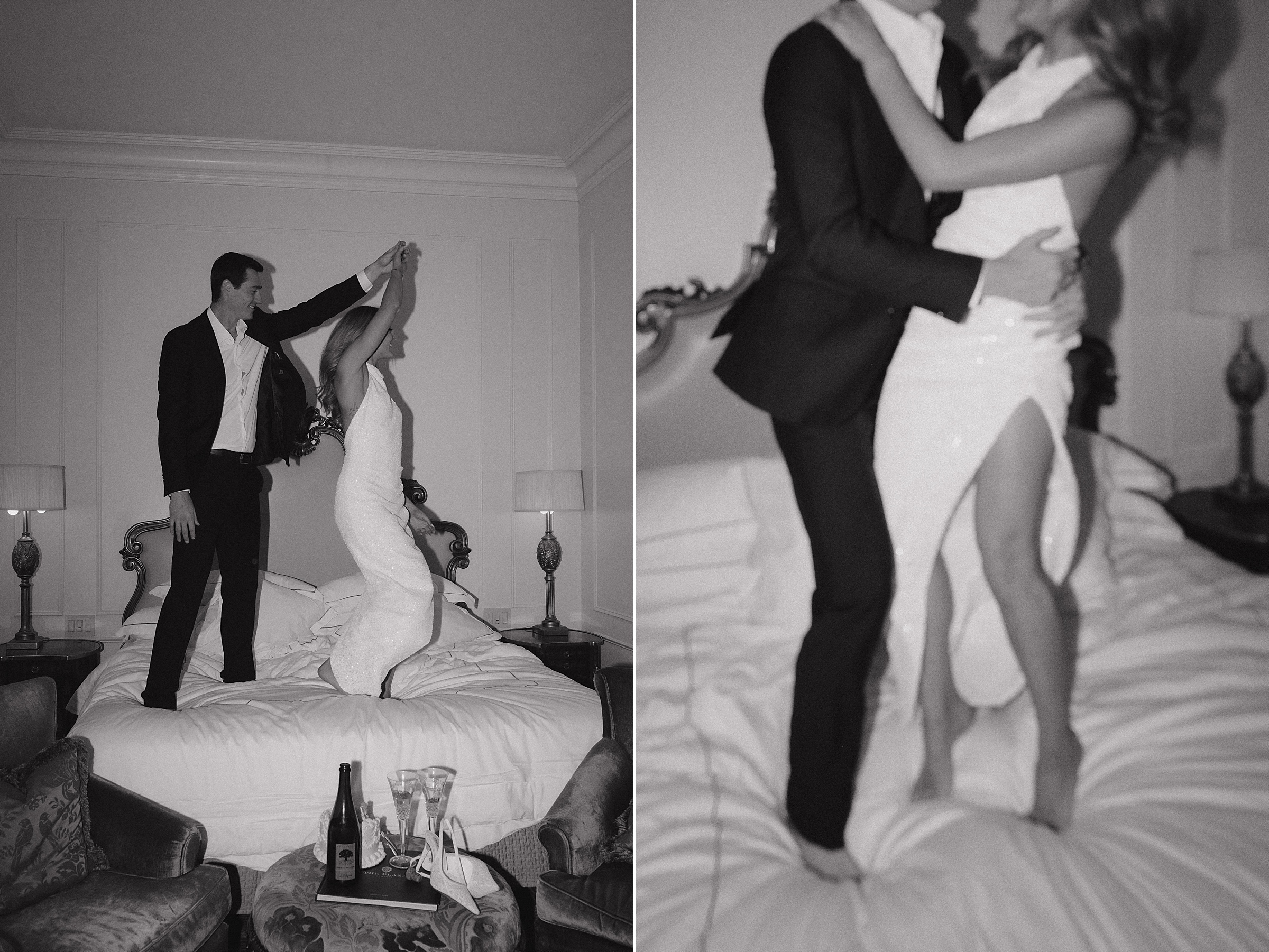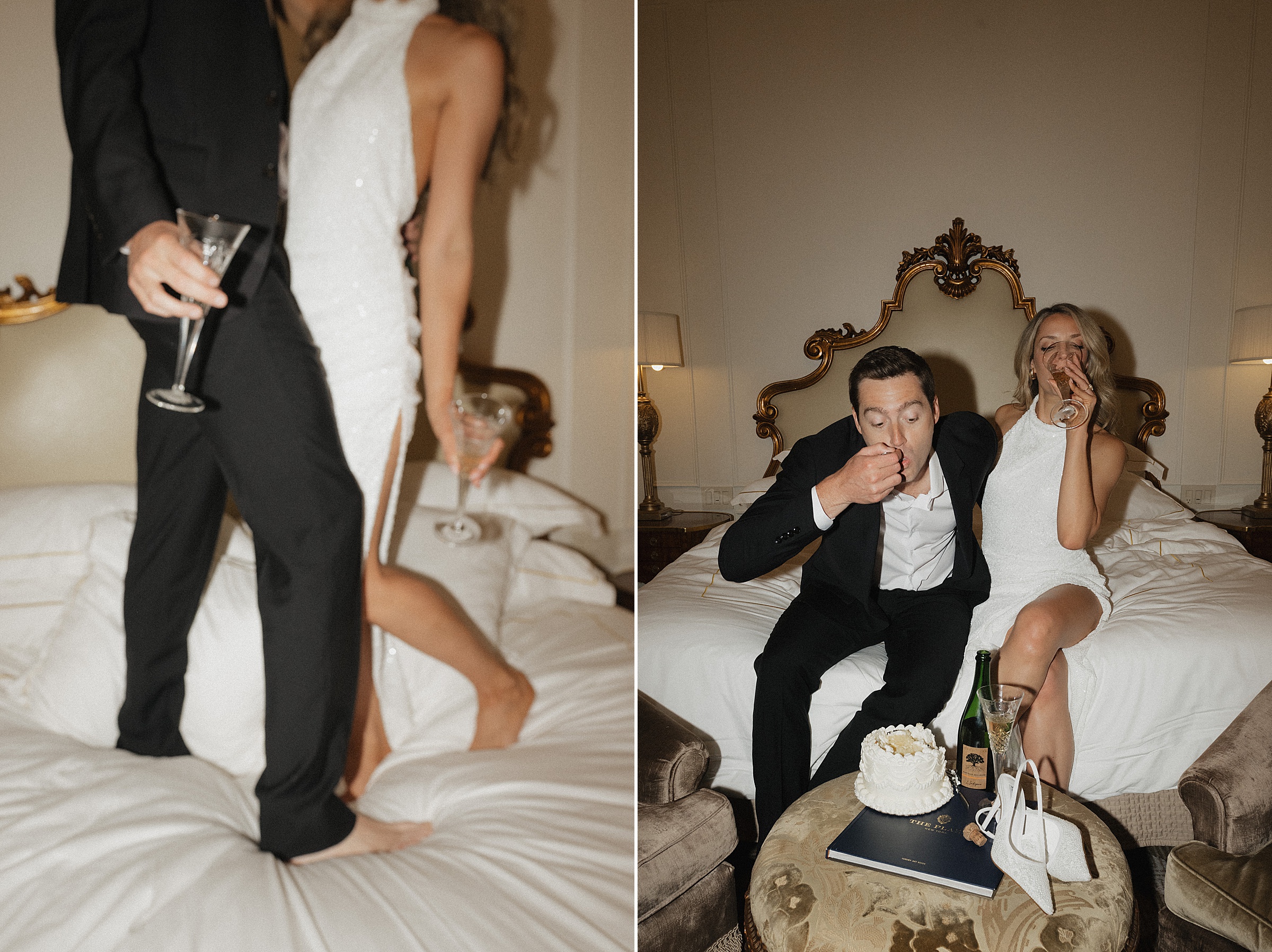 Then came the part that really showed off their playful side. Shoes off, they jumped on the bed in one of The Plaza’s signature suites, laughing and completely in the moment. It was one of those scenes you don’t stage — just pure joy.