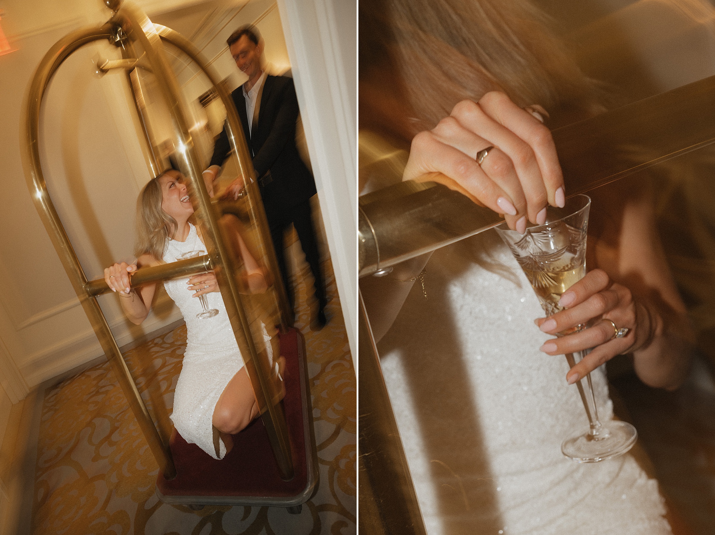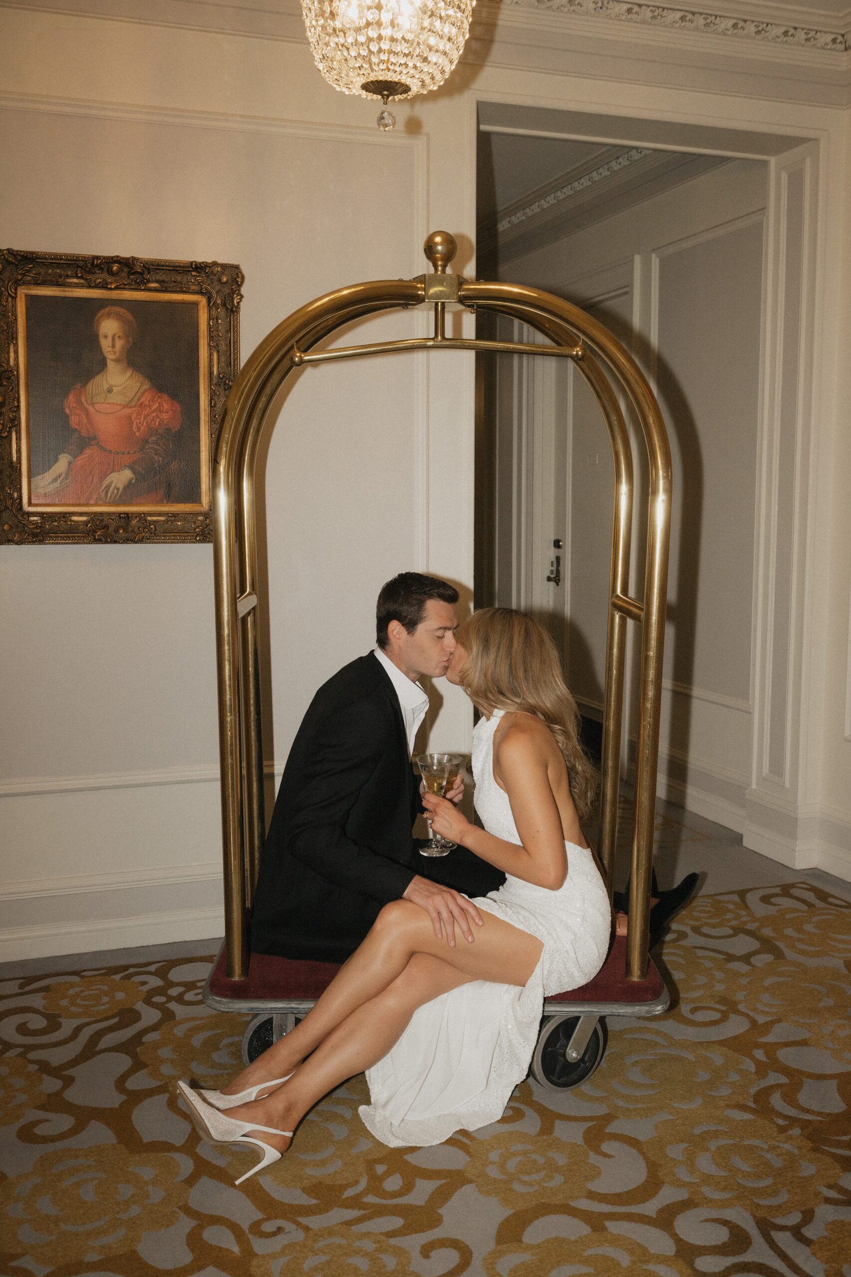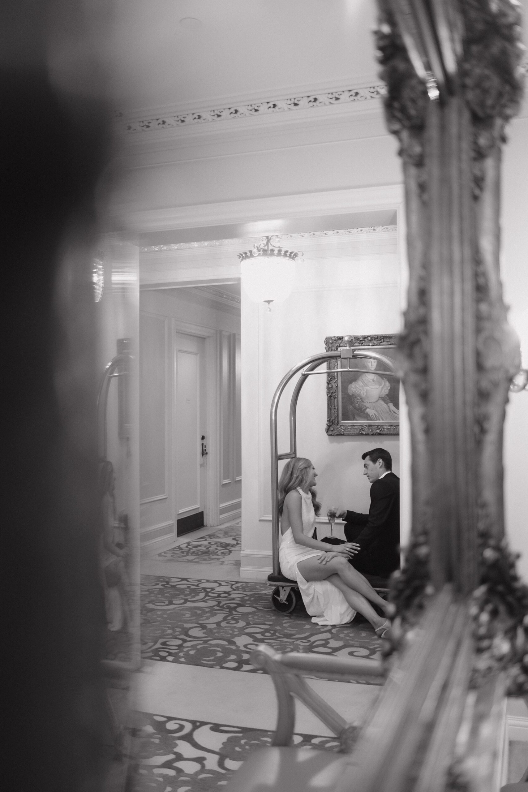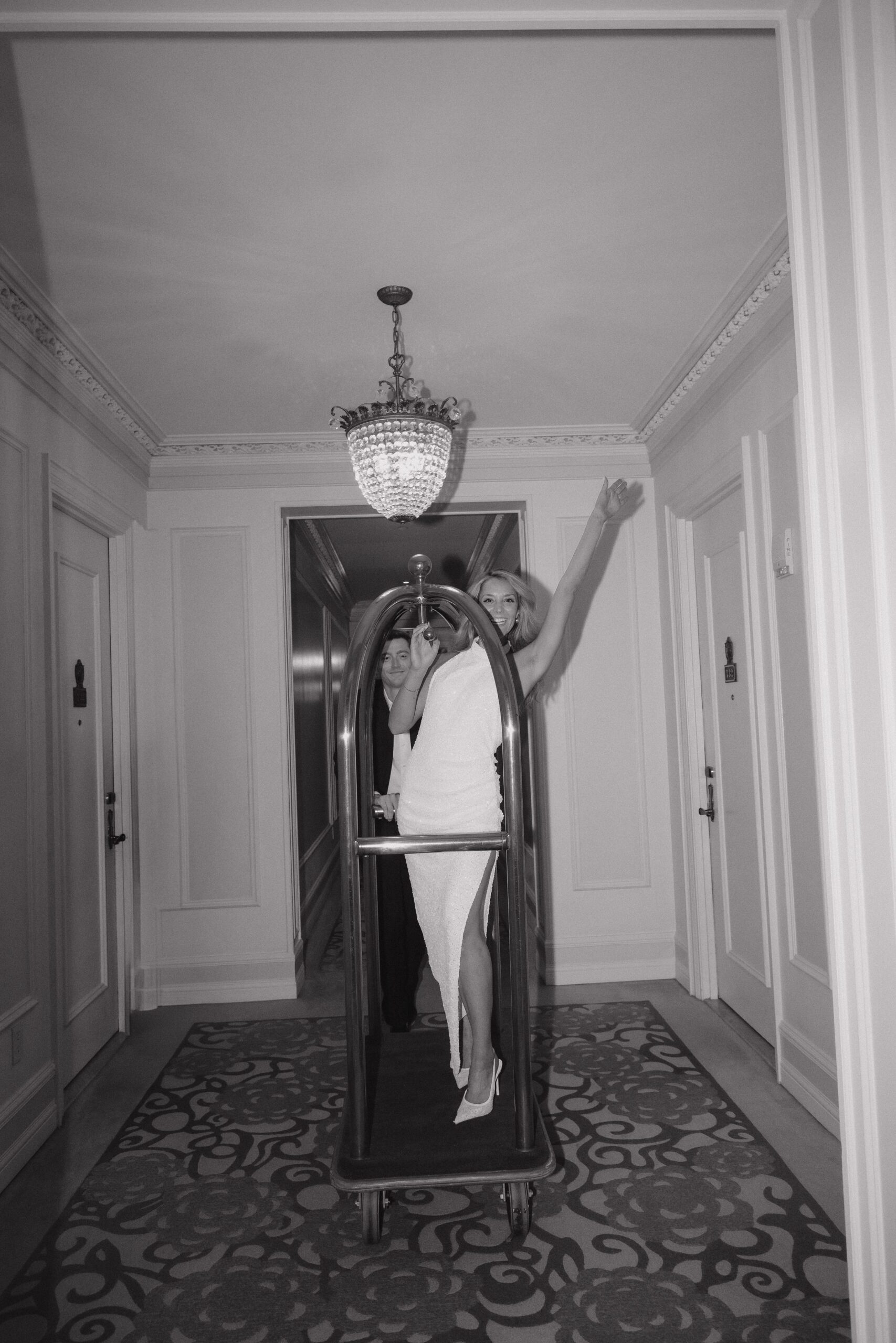 And of course, we couldn’t resist the luggage cart. Evan pushed Lauren through the hallways, both of them cracking up the whole time. It felt spontaneous and fun, and made for some of the most memorable photos of the day.