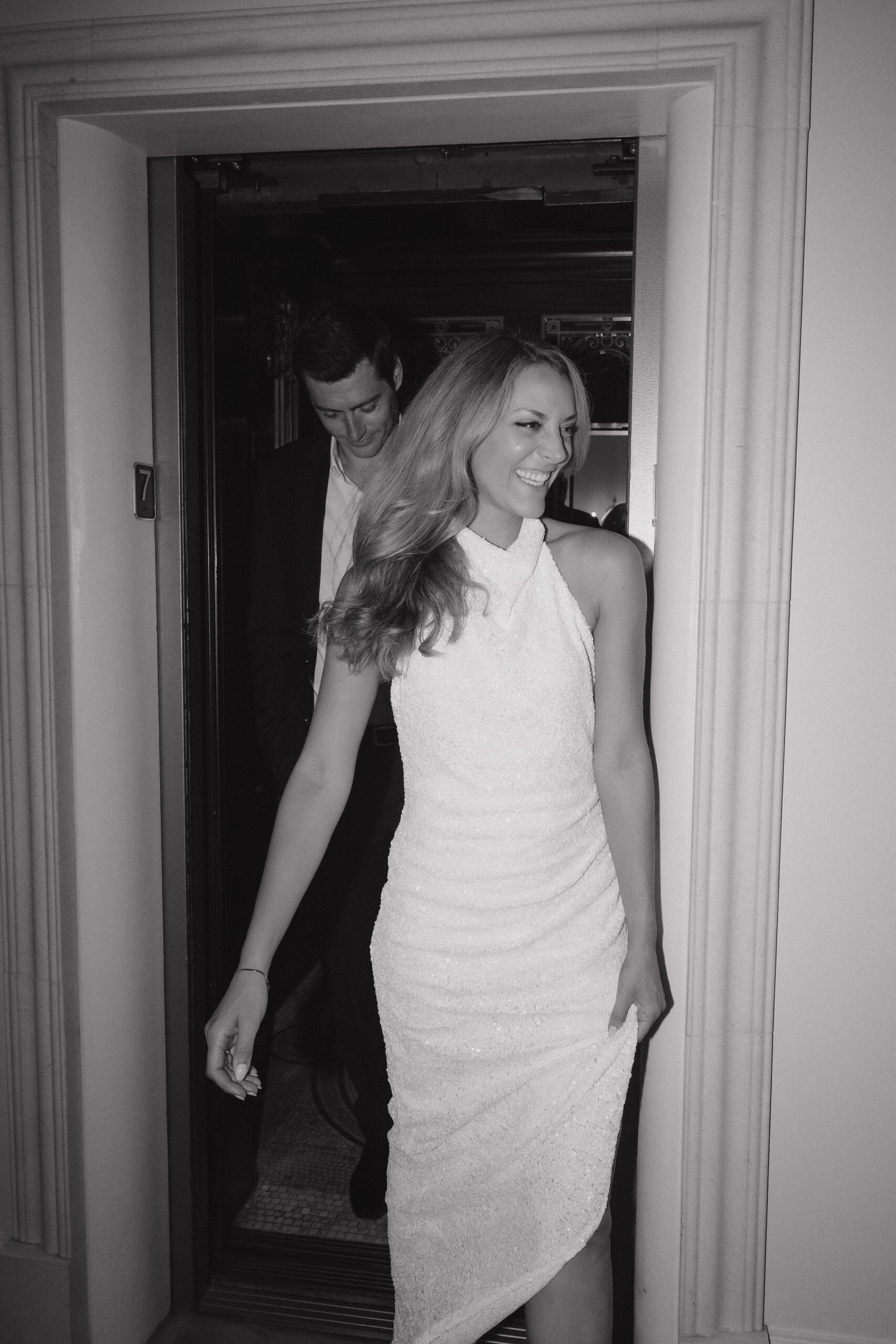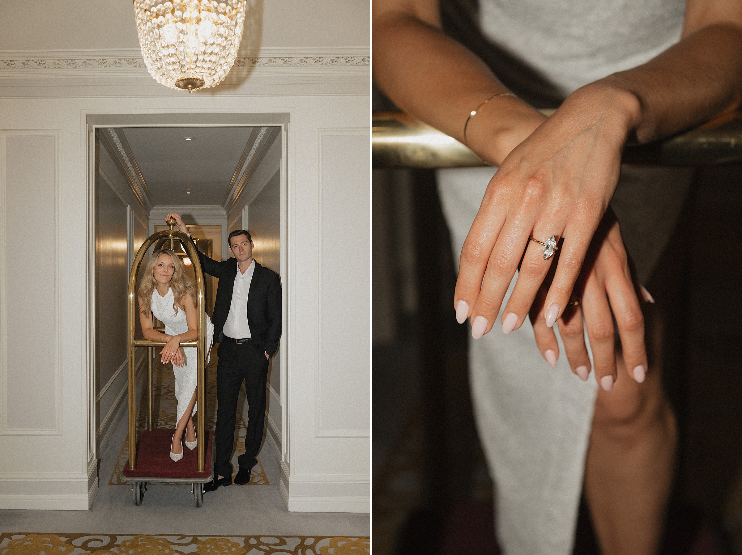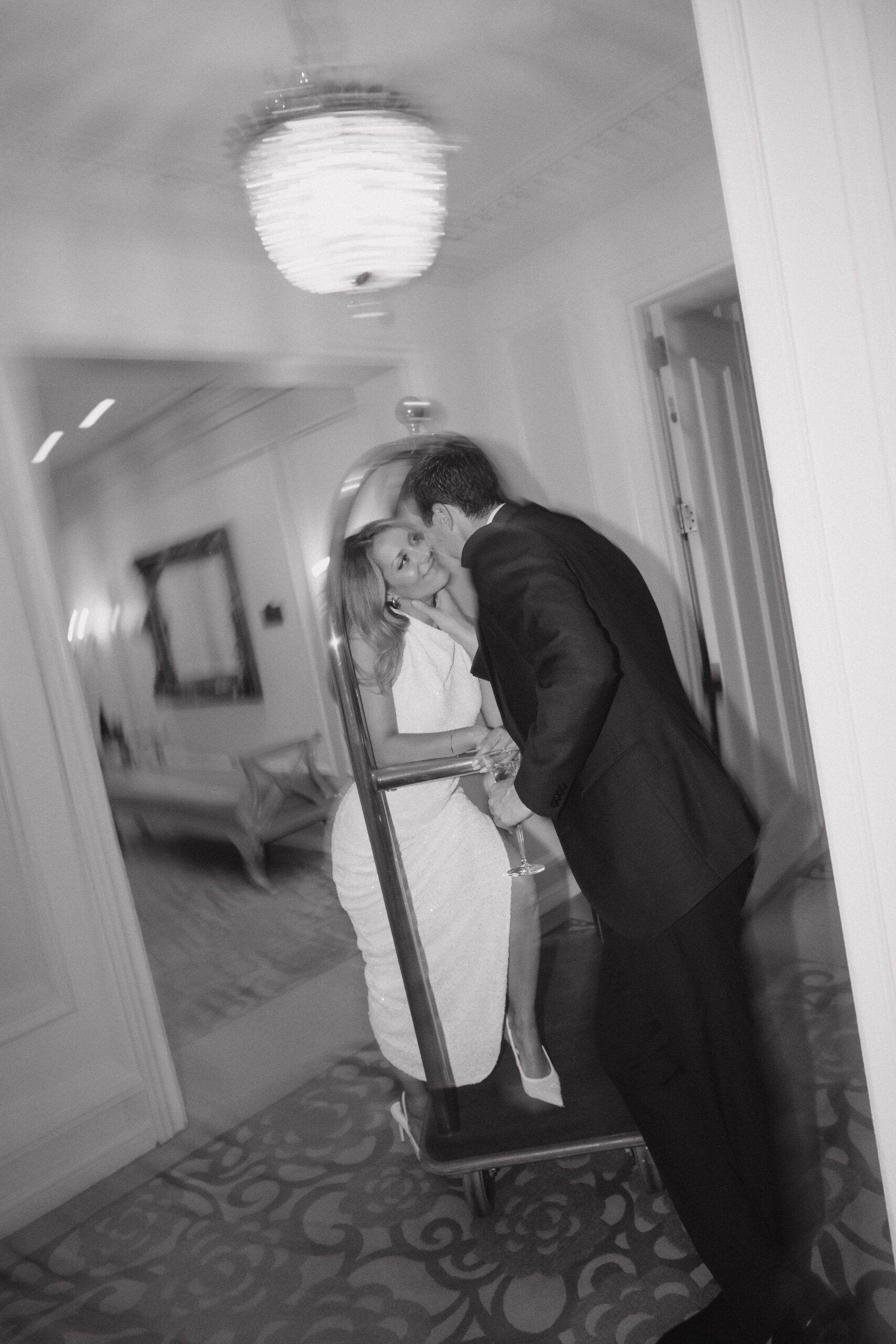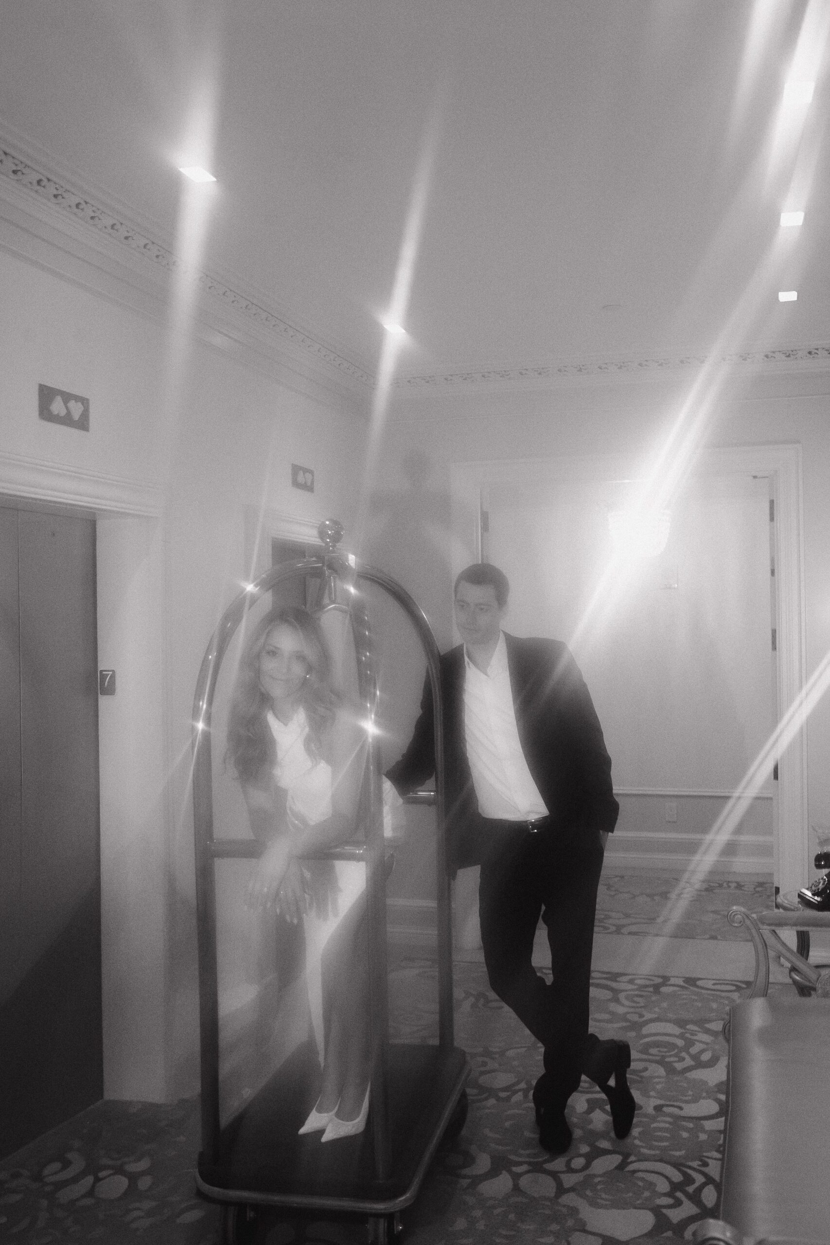 And of course, we couldn’t resist the luggage cart. Evan pushed Lauren through the hallways, both of them cracking up the whole time. It felt spontaneous and fun, and made for some of the most memorable photos of the day.