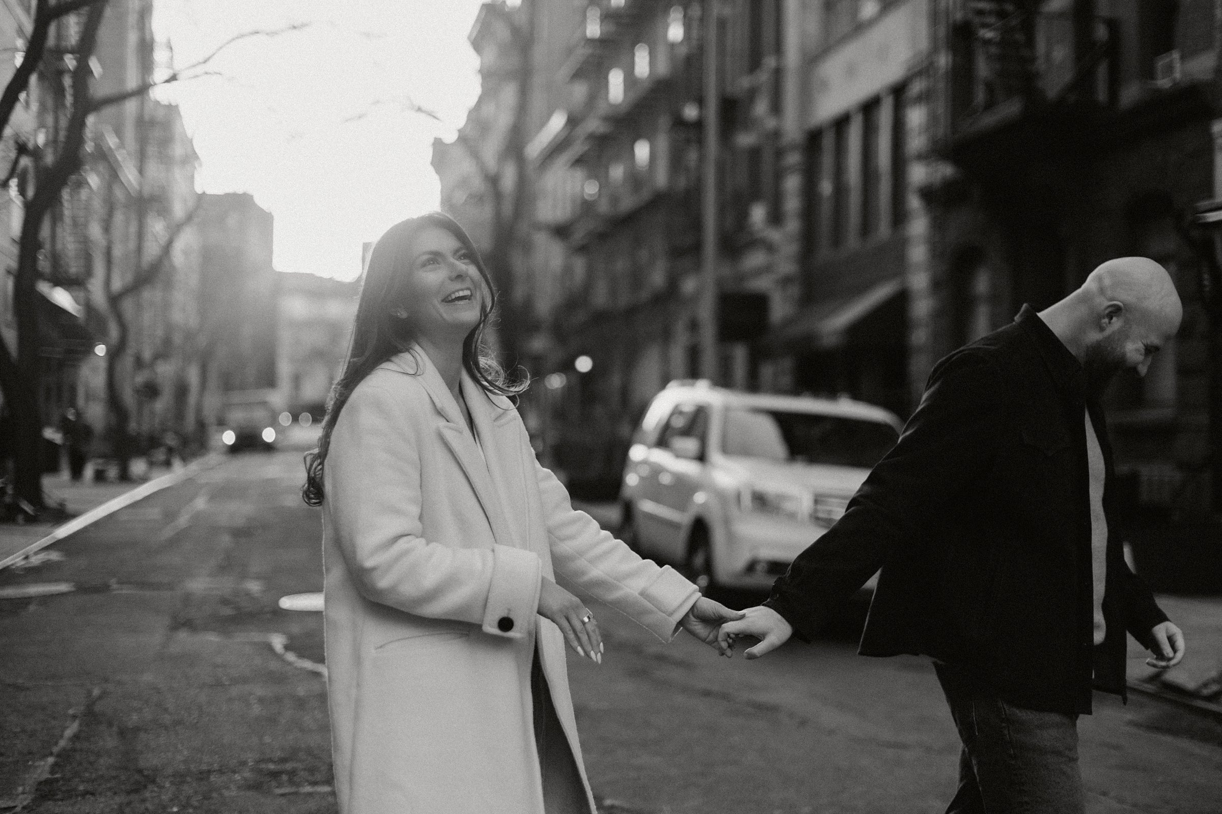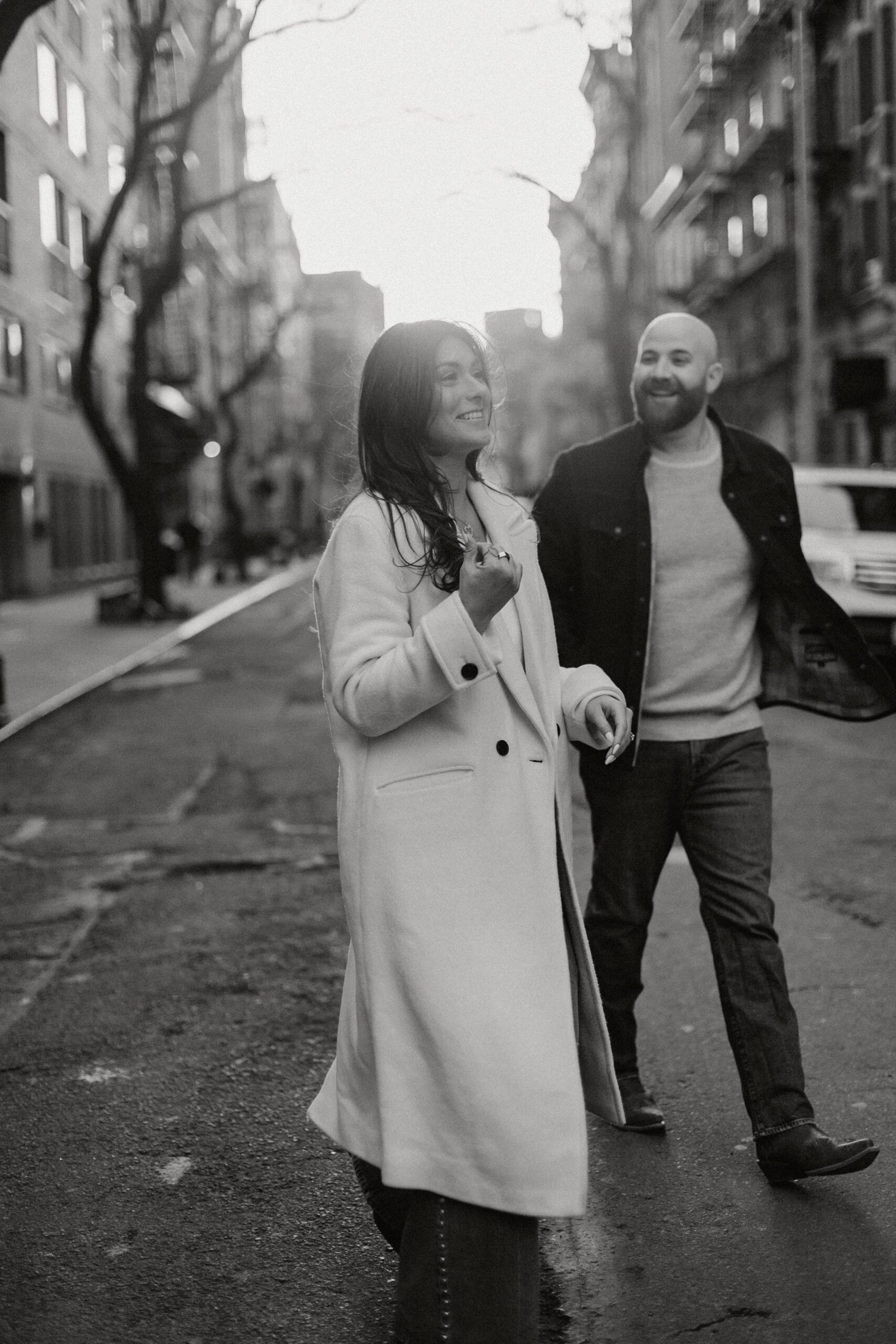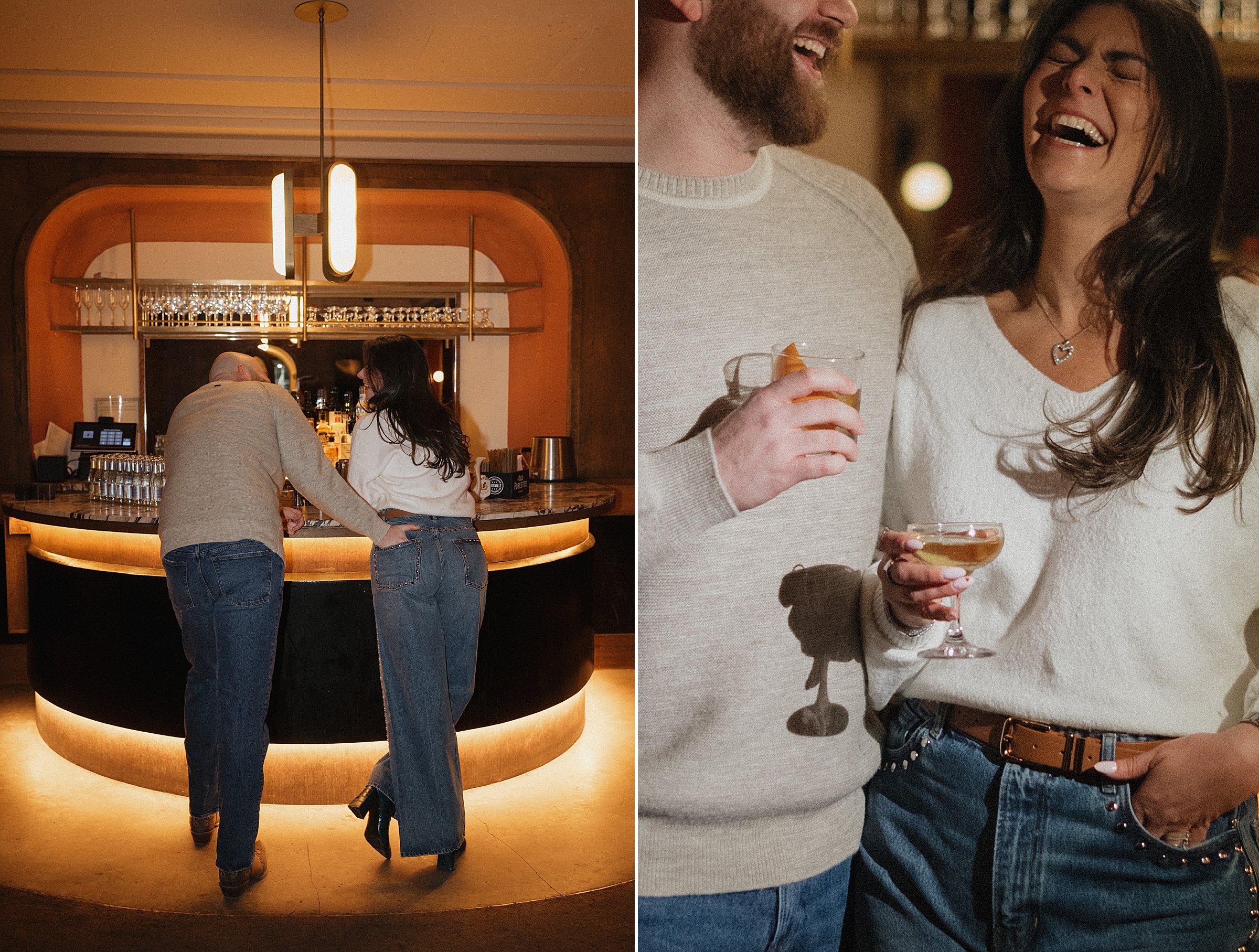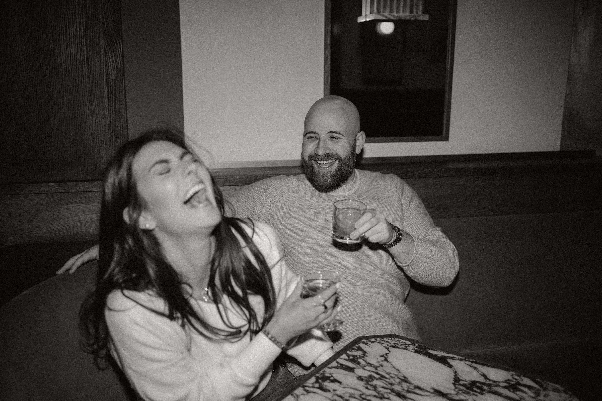 From there, we headed to The Spaniard, one of West Village’s most iconic cocktail bars. Drinks in hand, Molly and JB invited us into their world, easy laughter, witty banter, and that spark that makes photographing couples like them so effortless. The staff even let us slip into their private bar room for some flash photography. The moody lighting and playful vibes gave us another layer of storytelling. An edgy, stylish twist to balance the golden romance of earlier.