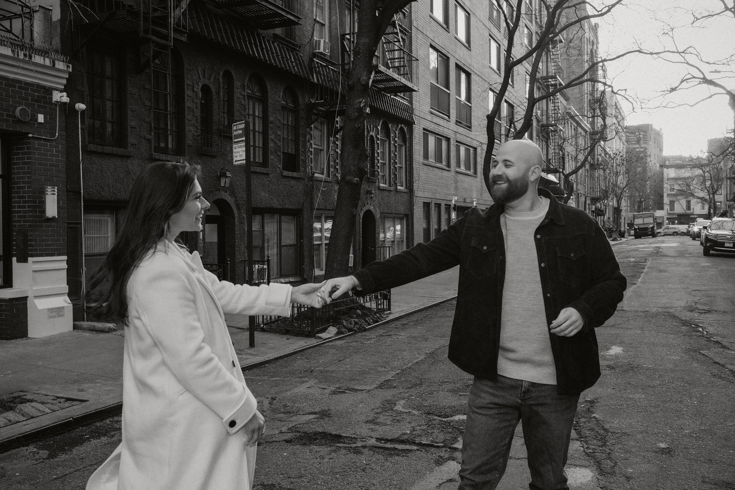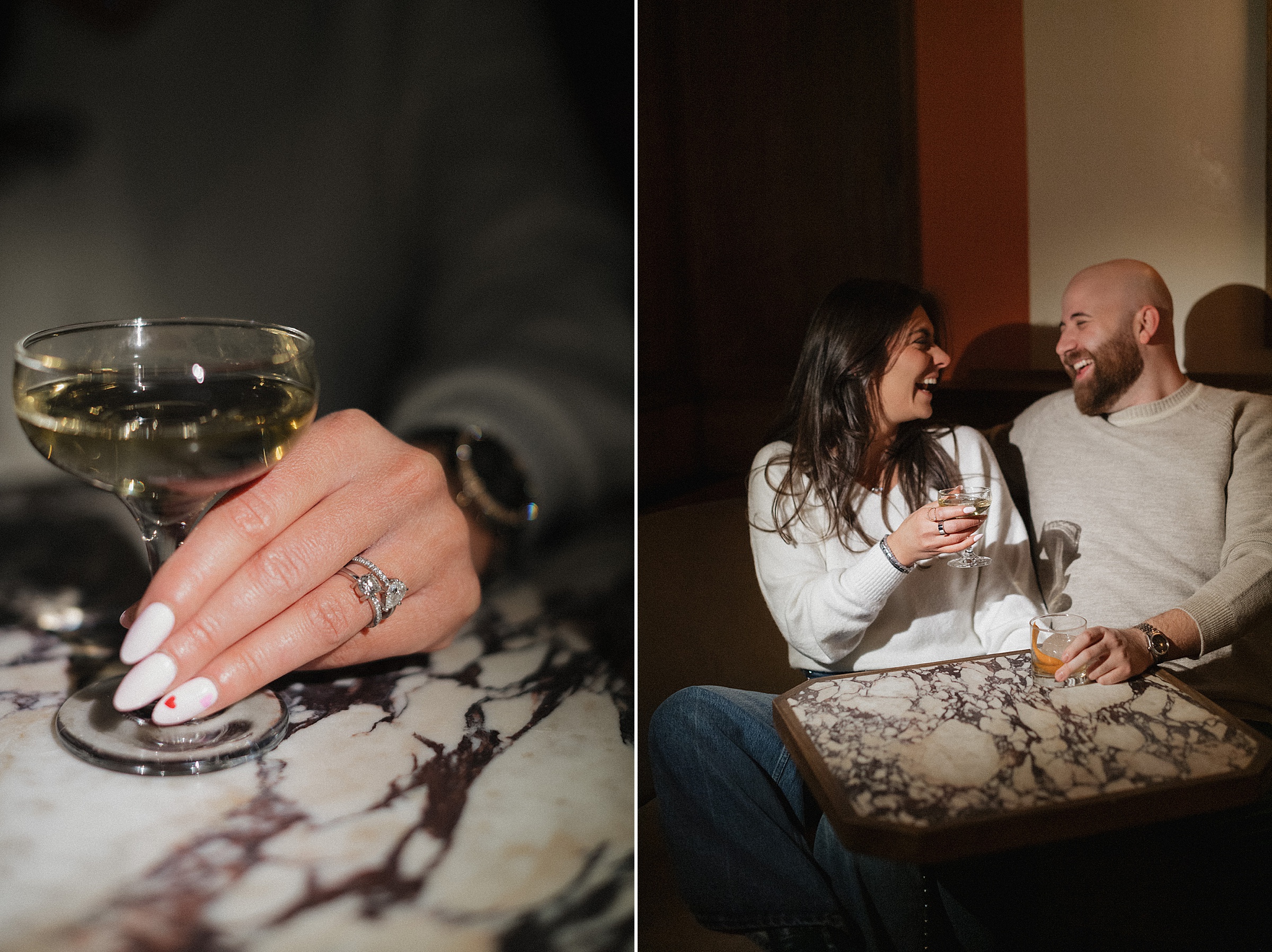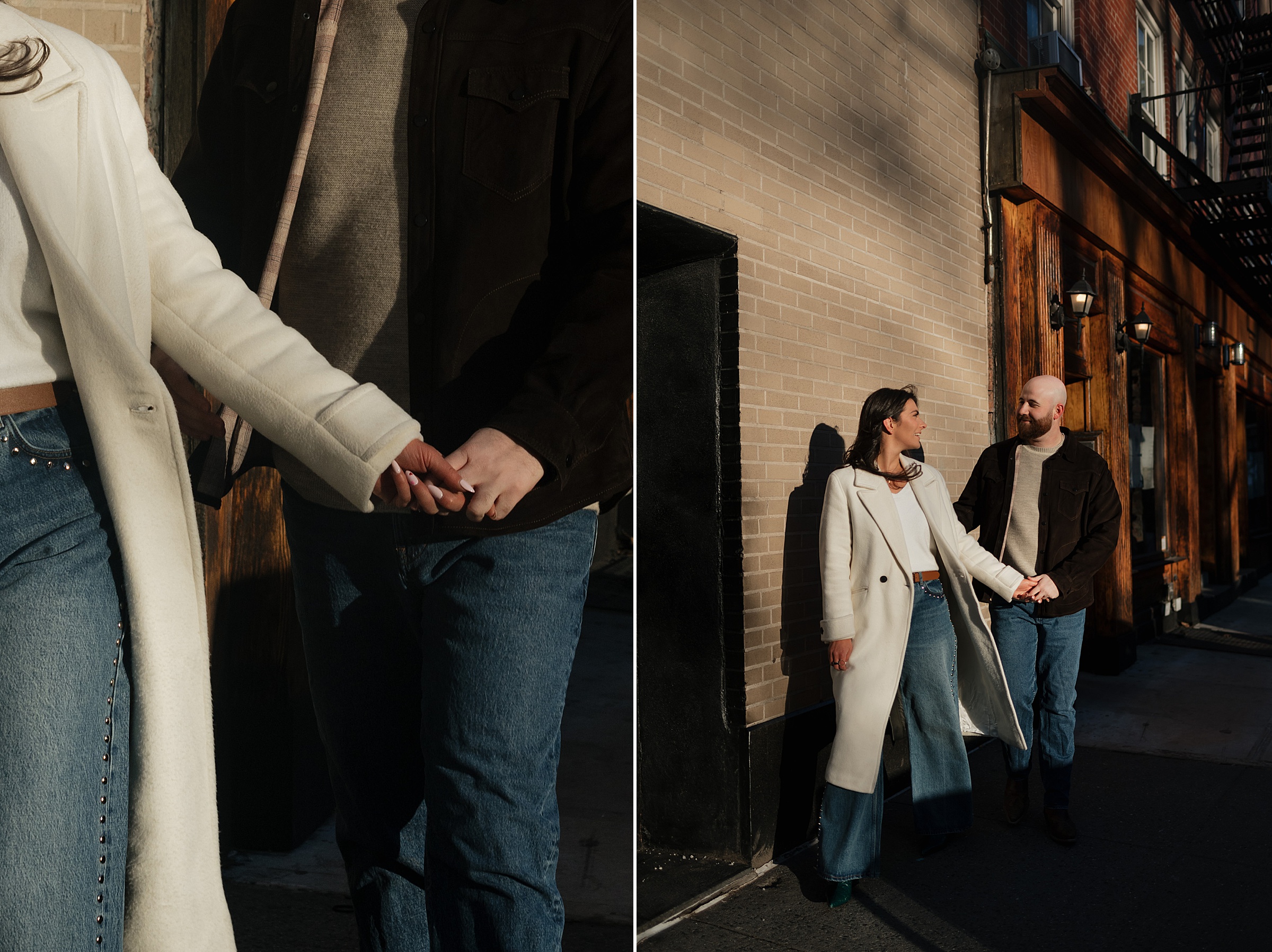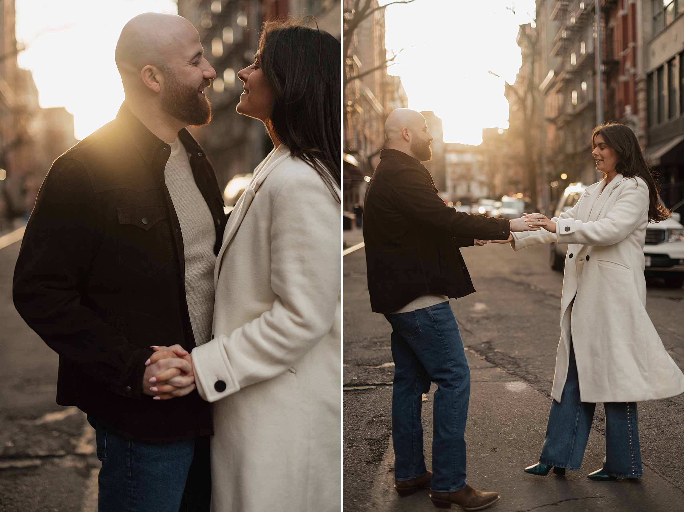 From there, we headed to The Spaniard, one of West Village’s most iconic cocktail bars. Drinks in hand, Molly and JB invited us into their world, easy laughter, witty banter, and that spark that makes photographing couples like them so effortless. The staff even let us slip into their private bar room for some flash photography. The moody lighting and playful vibes gave us another layer of storytelling. An edgy, stylish twist to balance the golden romance of earlier.