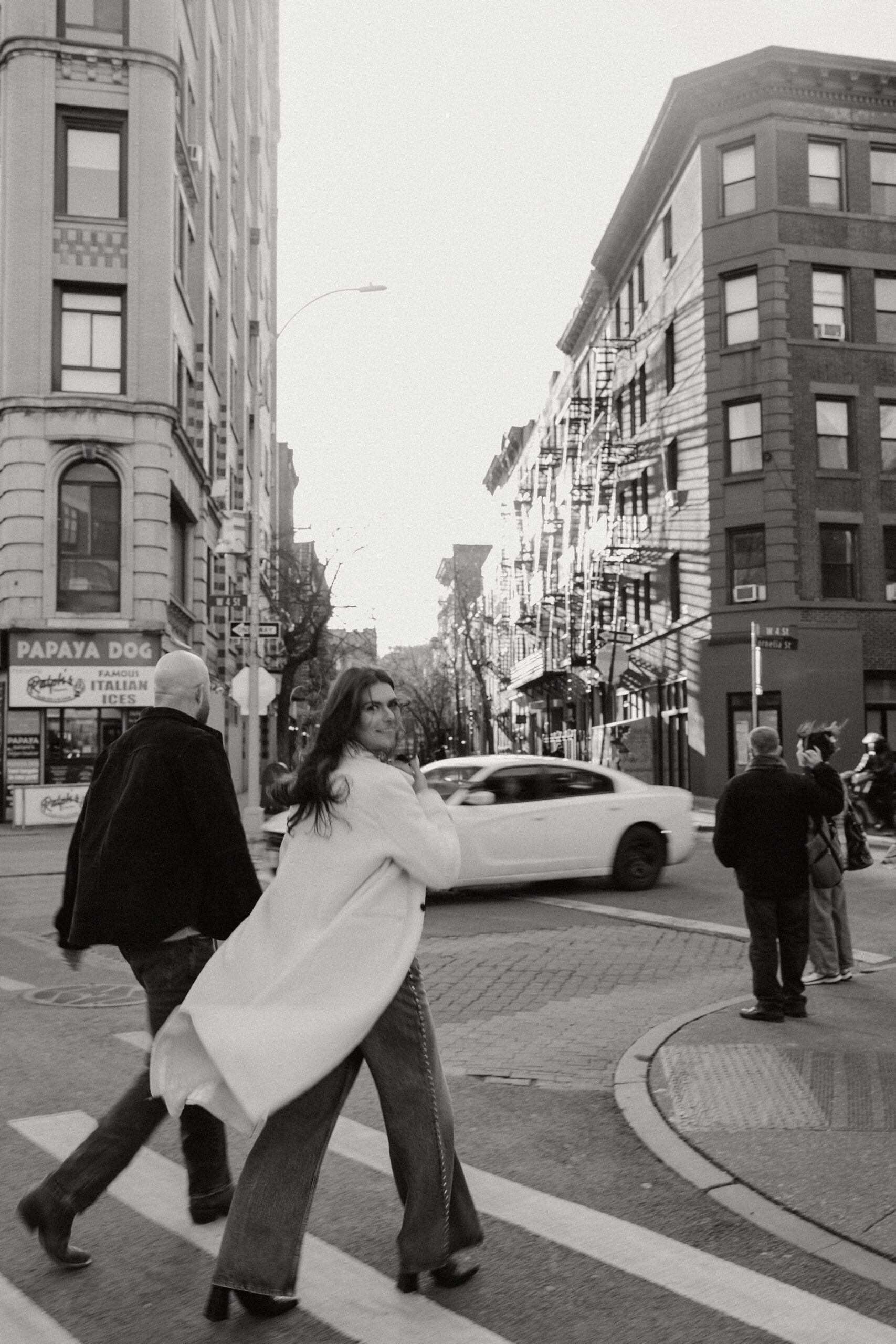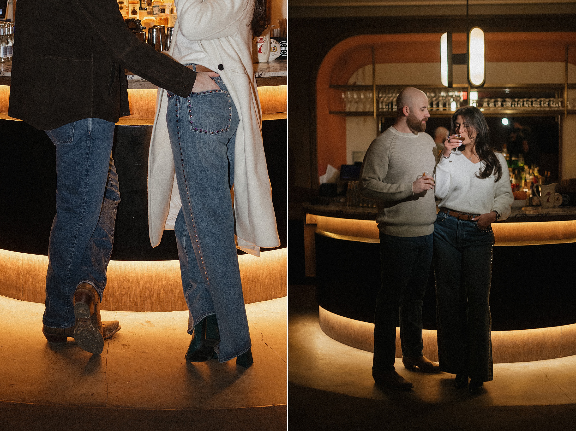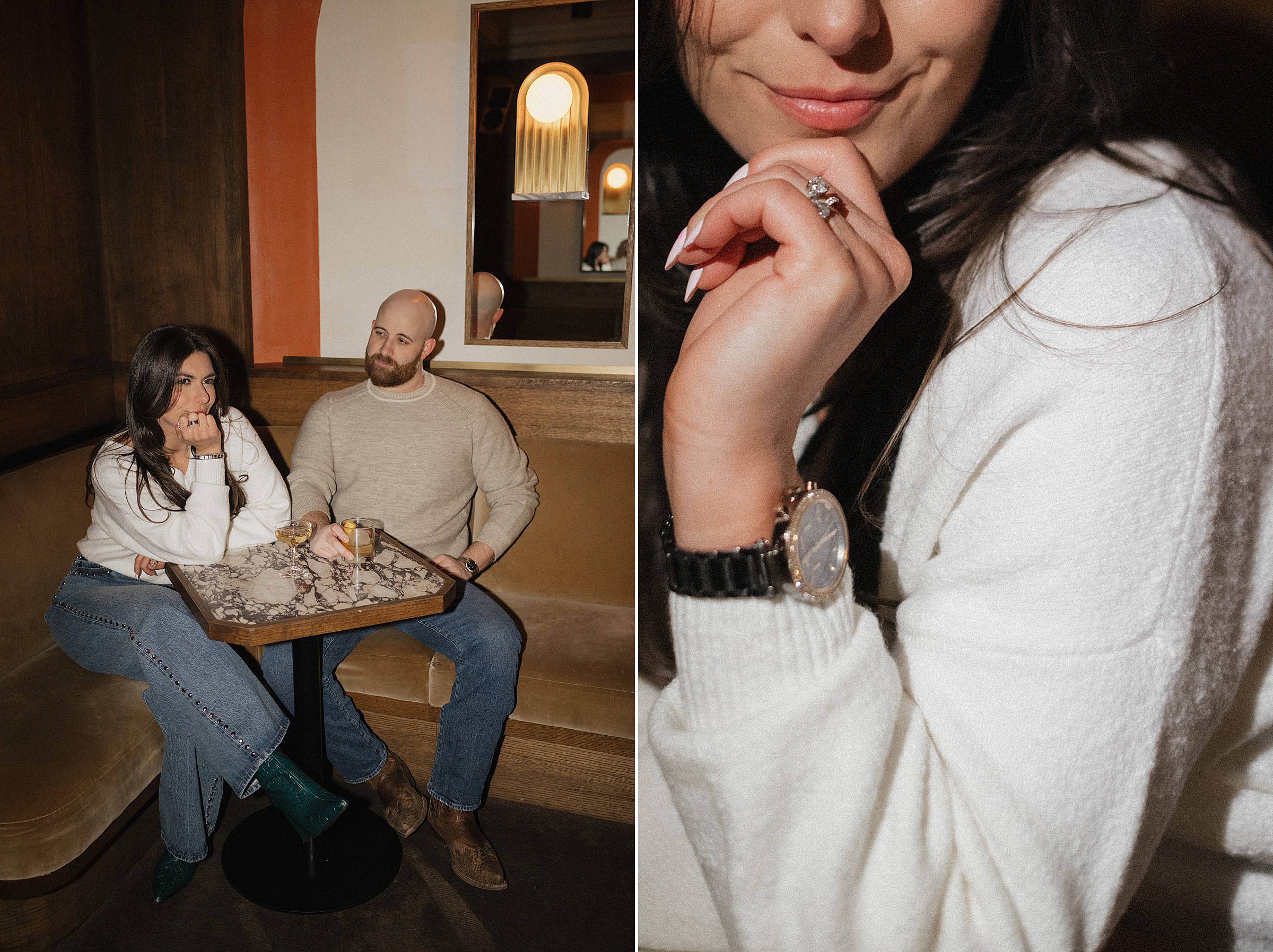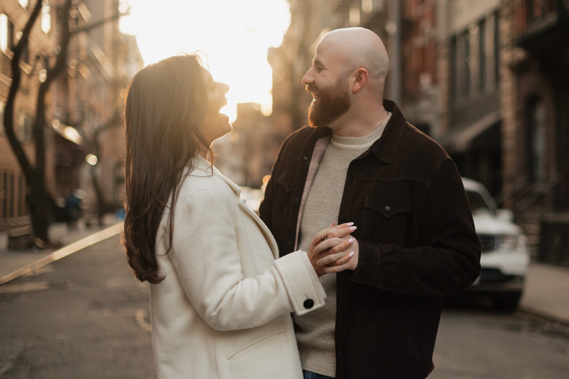 From there, we headed to The Spaniard, one of West Village’s most iconic cocktail bars. Drinks in hand, Molly and JB invited us into their world, easy laughter, witty banter, and that spark that makes photographing couples like them so effortless. The staff even let us slip into their private bar room for some flash photography. The moody lighting and playful vibes gave us another layer of storytelling. An edgy, stylish twist to balance the golden romance of earlier.