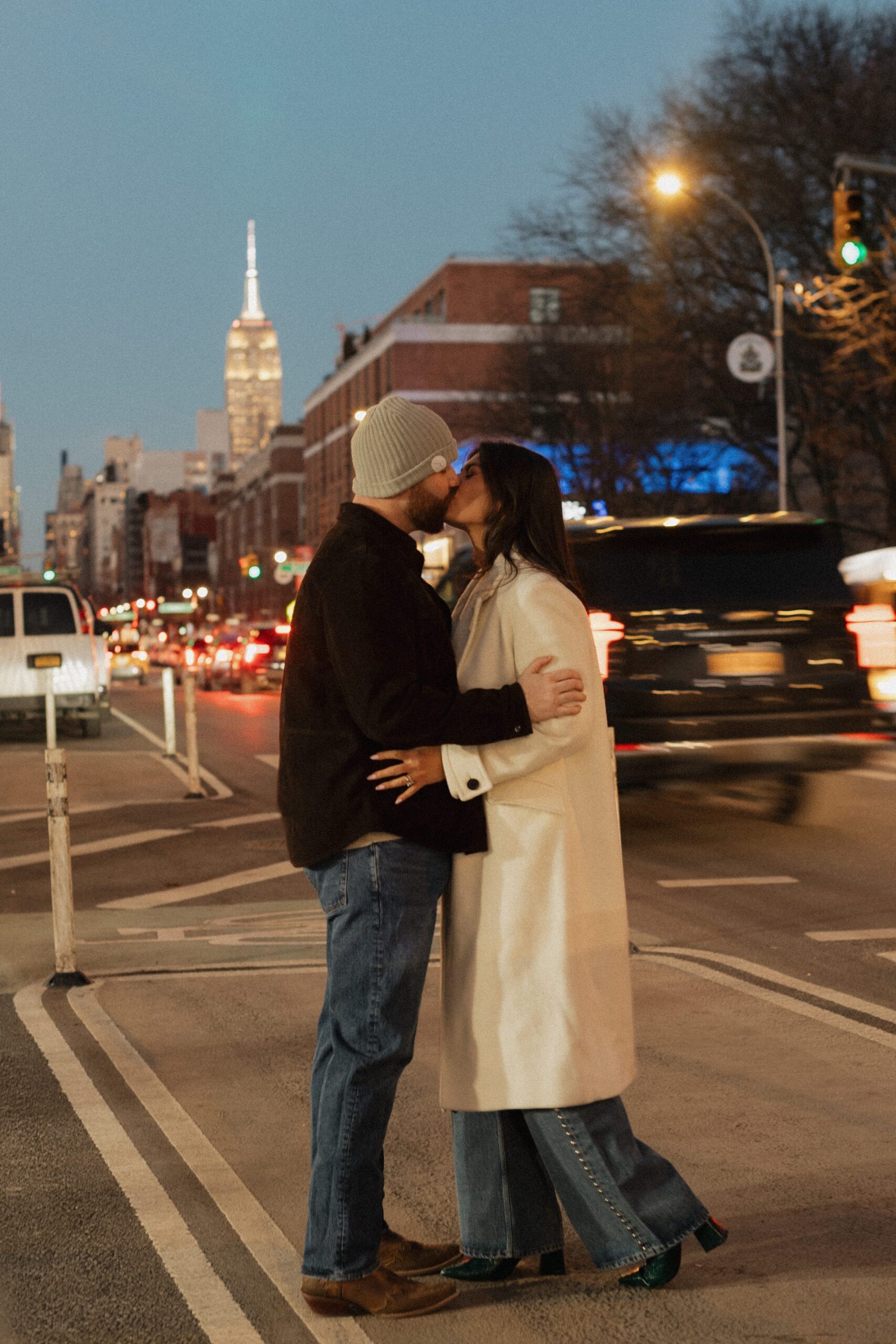 By the time we stepped outside, the sun had dipped low. Taxis whizzed past as the skyline shimmered in the distance, and we grabbed a few final shots before calling it a day. This West Village engagement session with Molly and JB had everything—city grit, timeless romance, and pizza-fueled fun. Truly, it’s one of our favorite New York City sessions to date.