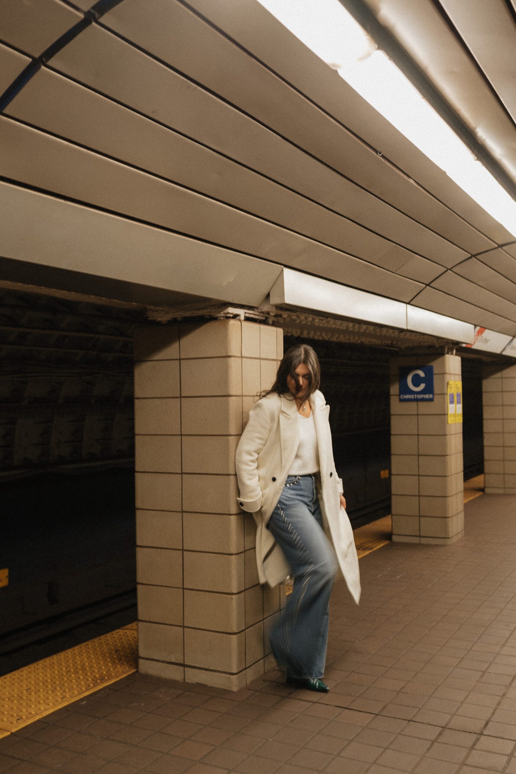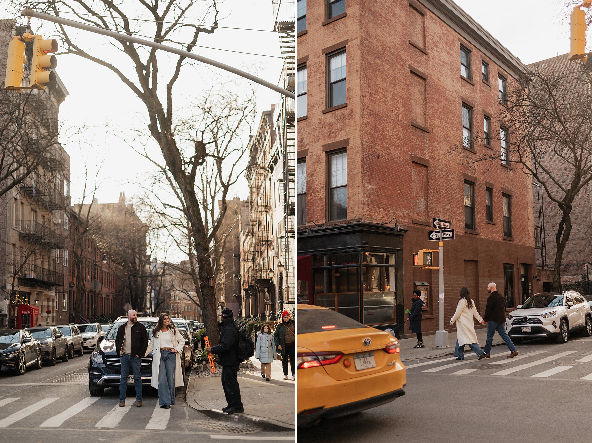 Up the station steps, we were greeted by golden winter light spilling onto Christopher Street. West Village is always charming. But this day was magic. The sun was shining on a chilly afternoon, warming up the tree-lined streets just enough to make every photo glow. We wandered past iconic brownstones, paused on stoops (because you can’t shoot in West Village without a stoop moment), and followed little pockets of light as they filtered through the trees.