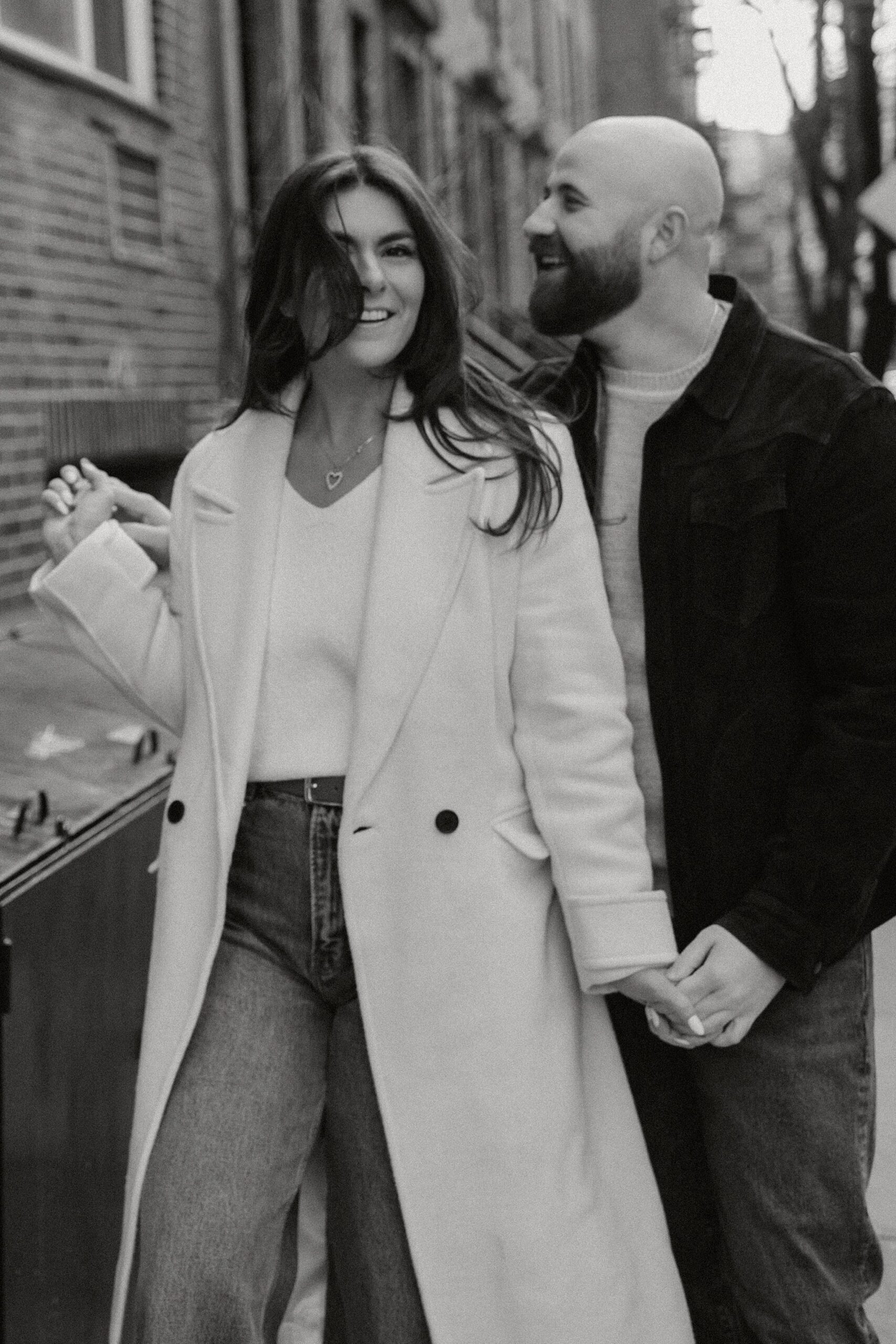Molly and JB were effortlessly cool—laughing, holding hands, and occasionally stopping to point out their favorite spots. These weren’t just photo locations; they were pieces of their life together. Every corner seemed to tell a story.